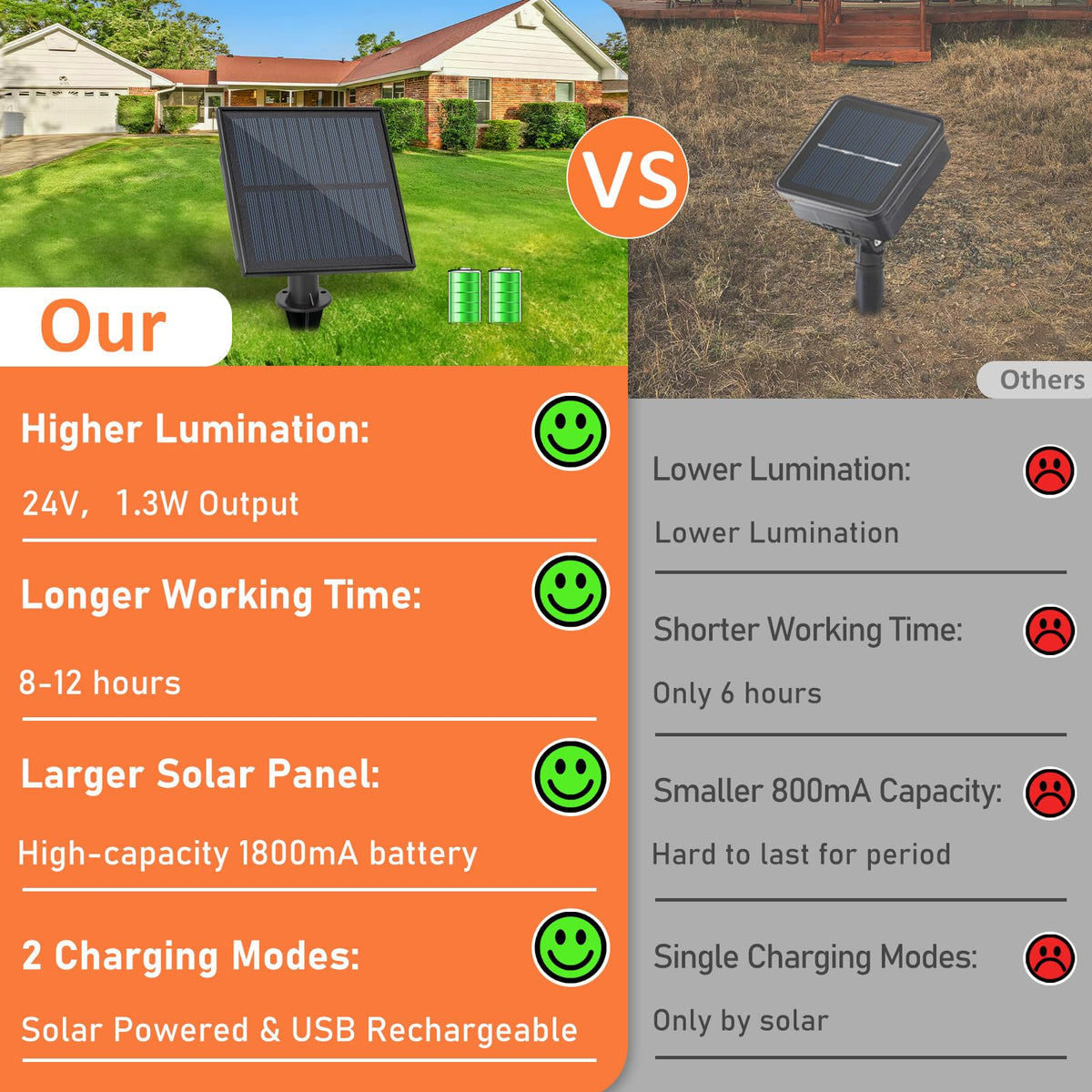 Solar Powered & Type-C Charging: These outdoor solar string lights harness the sun's energy during the day, automatically turning on at night without the need for electricity. The added Type-C charging port ensures reliable functionality even on rainy days, allowing for a hassle-free experience.