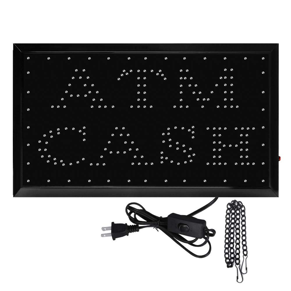 SpecificationsSquare Double-lineOPEN:OPEN s double line is red and lighting continuously, and the side lights are blue, lightening clockwiseOval Double-lineOPEN:OPEN s one line is orange and the other line is red, both lighting continuously, and the side lights are blue, lightening clockwiseOval Welcome & OPEN: Welcome is green and OPEN is red, both lighting continuously, and the side lights are blue, lightening clockwiseSquare Welcome & OPEN :Welcome is red and OPEN is green, both lighting continuously, and the side lights are blue, lightening clockwiseSize:19 x 10/ 48cm x 25cm ( L x W )22 x 13/ 55cm x 33cm ( L x W )Voltage: 110VPlug: America StandardPackage included:1 x (19 x 10/22 x 13) LED OPEN board1 x hanging chain (20)1 x plug with wire (55)