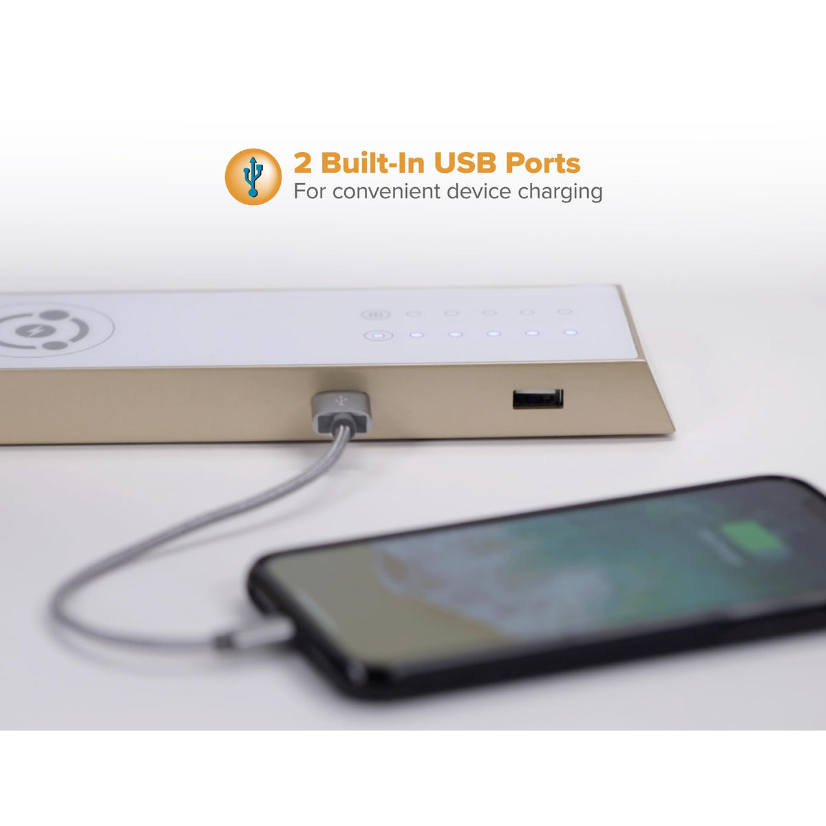 Q: Can I charge multiple devices at once with this lamp?A: Absolutely! The lamp is equipped with a Qi wireless charging pad and two built-in USB ports, enabling you to charge multiple devices simultaneously, including phones and tablets.