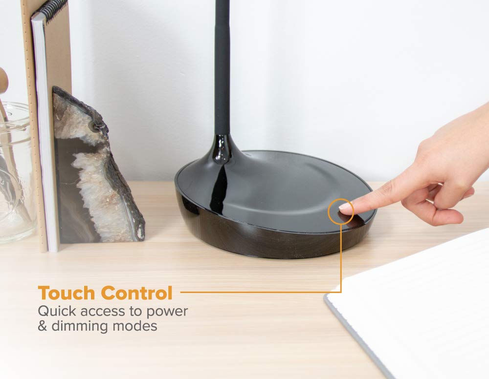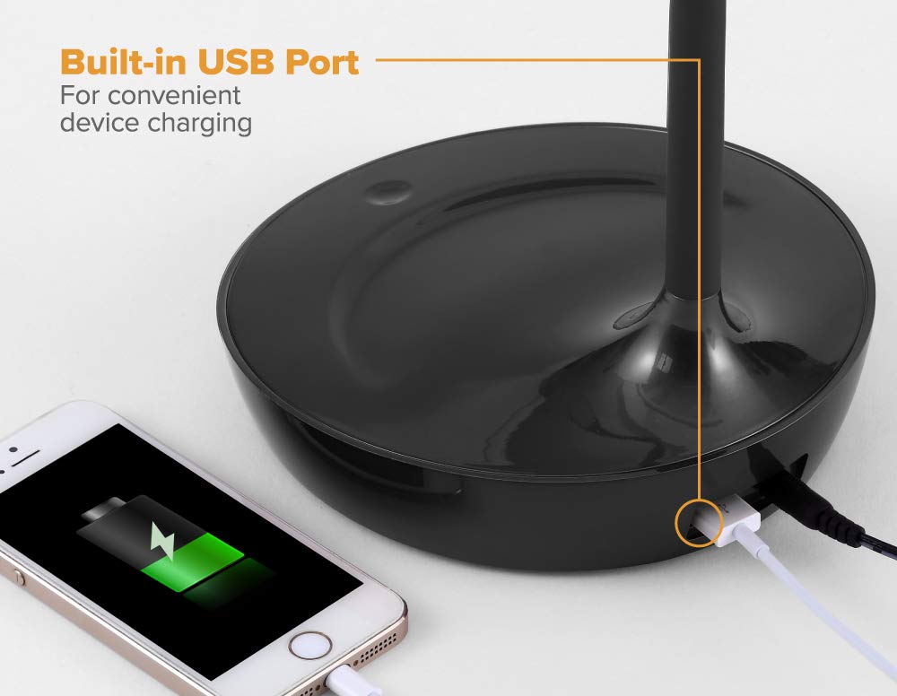 Bostitch Office Kt-Vled1502-Blk Gooseneck Led Desk Lamp With Usb Charging Port, Dimmable, Black