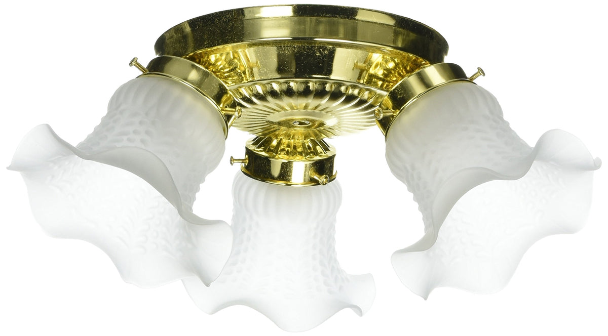 This medium lamp base ceiling fixture features a polished brass finish that adds a touch of sophistication to your space. The frosted tulip glass shade diffuses light beautifully, creating a warm and inviting atmosphere. With a semi-flush mounting style, it is suitable for various ceiling heights, making it a versatile choice for both modern and traditional interiors. The fixture accommodates three clear medium base bulbs, allowing for ample illumination while being easy to maintain.