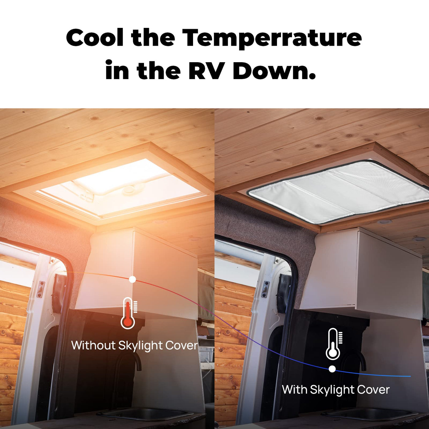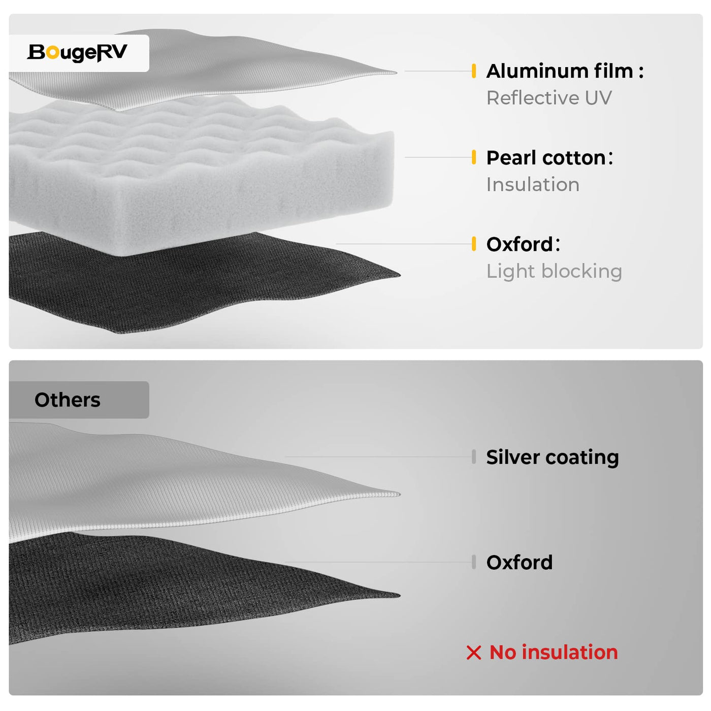 Q: How does the pearl cotton interlayer improve insulation?A: The pearl cotton interlayer in the BougeRV RV skylight cover provides superior insulation compared to standard covers that only use a silver coating, helping to maintain the internal temperature of your RV.