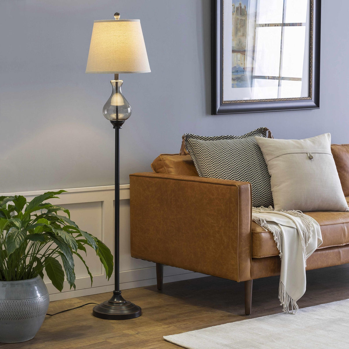 Boutiquerugs Isiolo Floor Lamp For Living Room - Shade Linen - Modern Iron And Glass Standing Lighting - Black, Cream, Beige - 6