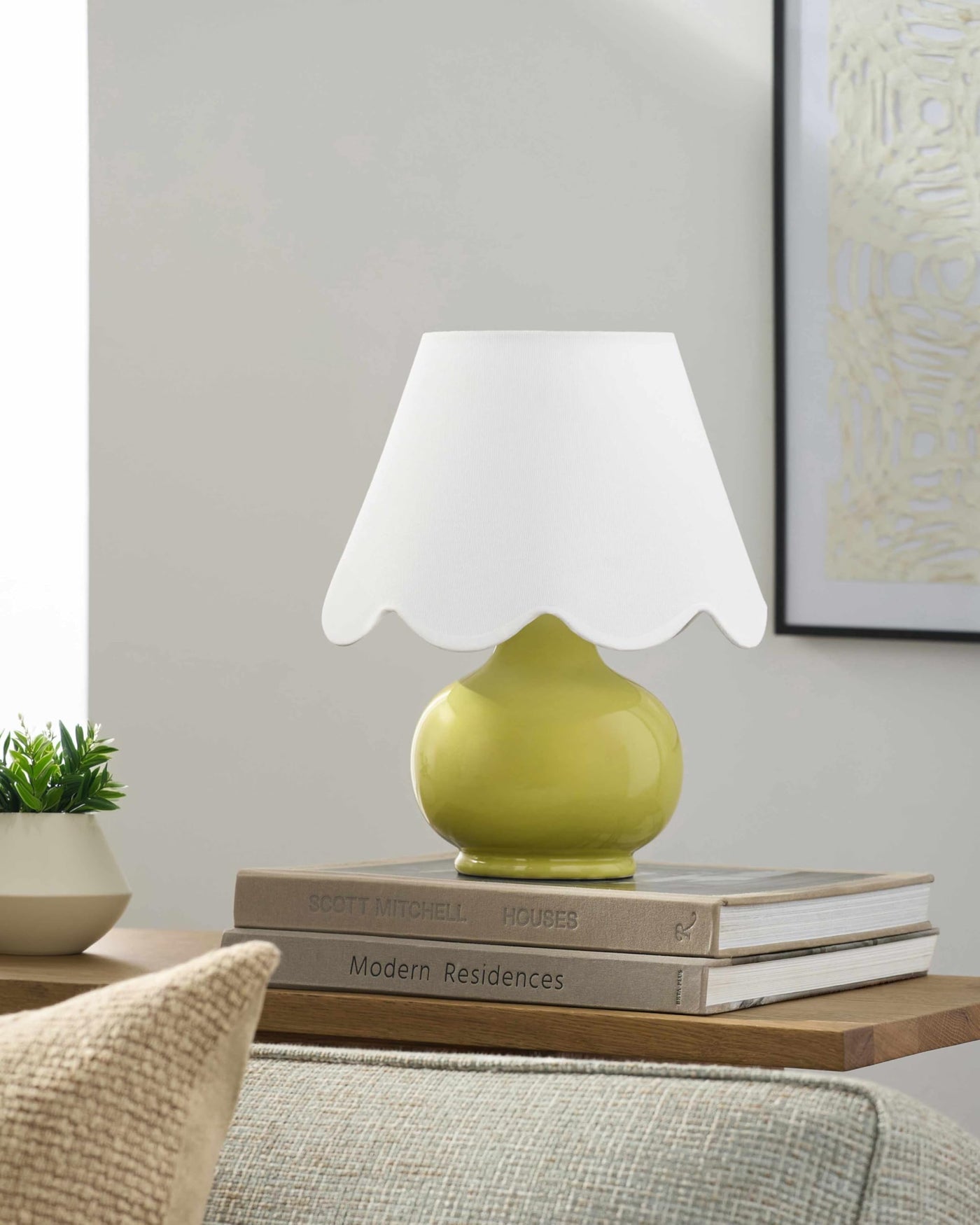 Boutiquerugs Theisseil Boho Ceramic Bedside Table Lamp For Bedroom Nightstand And Living Room - Shade Cotton - Green, Sage, Whit
