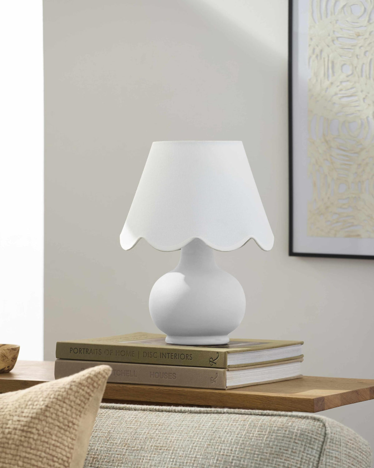 Boutiquerugs Theisseil Boho Ceramic Bedside Table Lamp For Bedroom Nightstand And Living Room - Shade Cotton - White - 13'' H