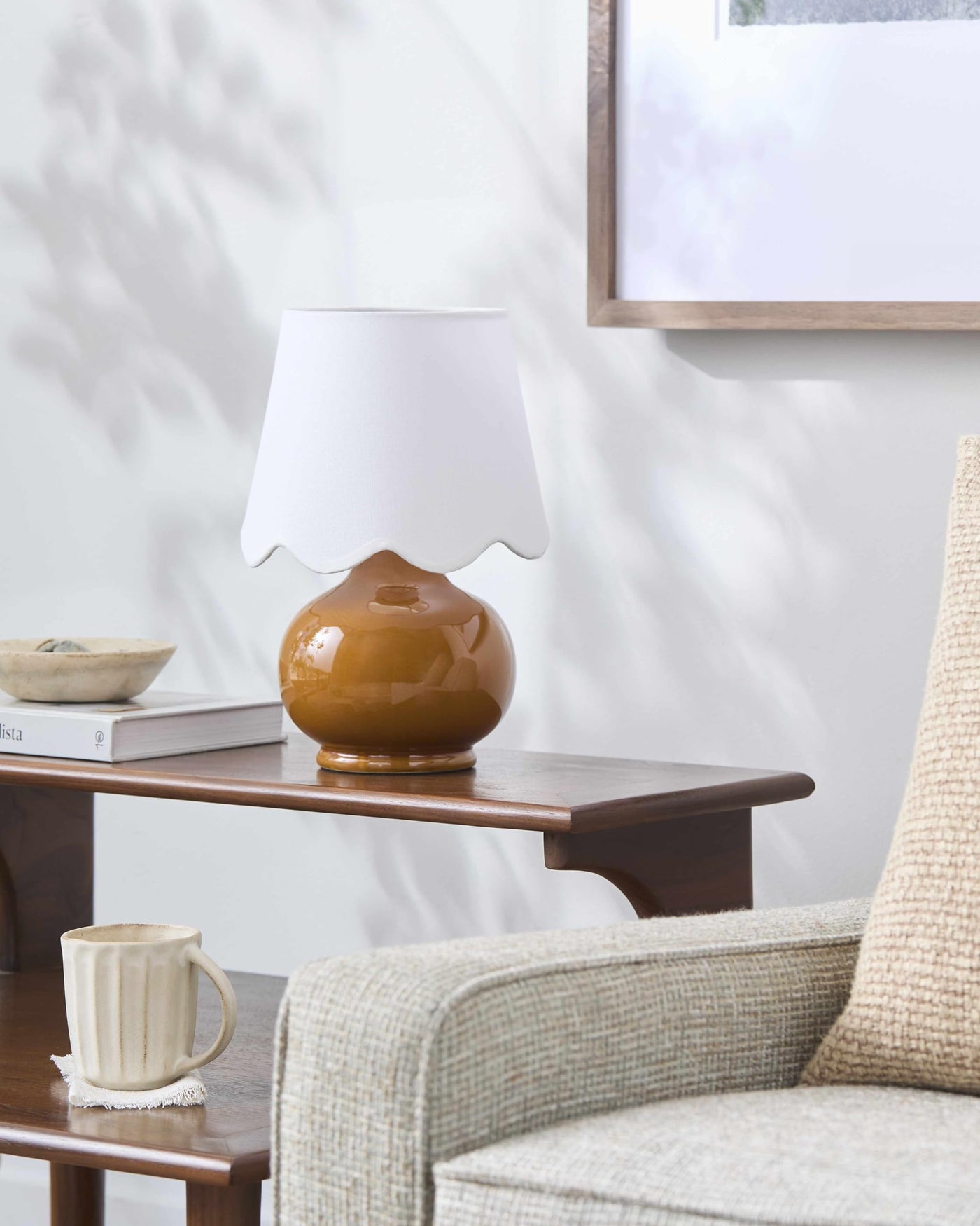 Boutiquerugs Theisseil Boho Ceramic Bedside Table Lamp For Bedroom Nightstand And Living Room - Shade Cotton - White, Brown - 13