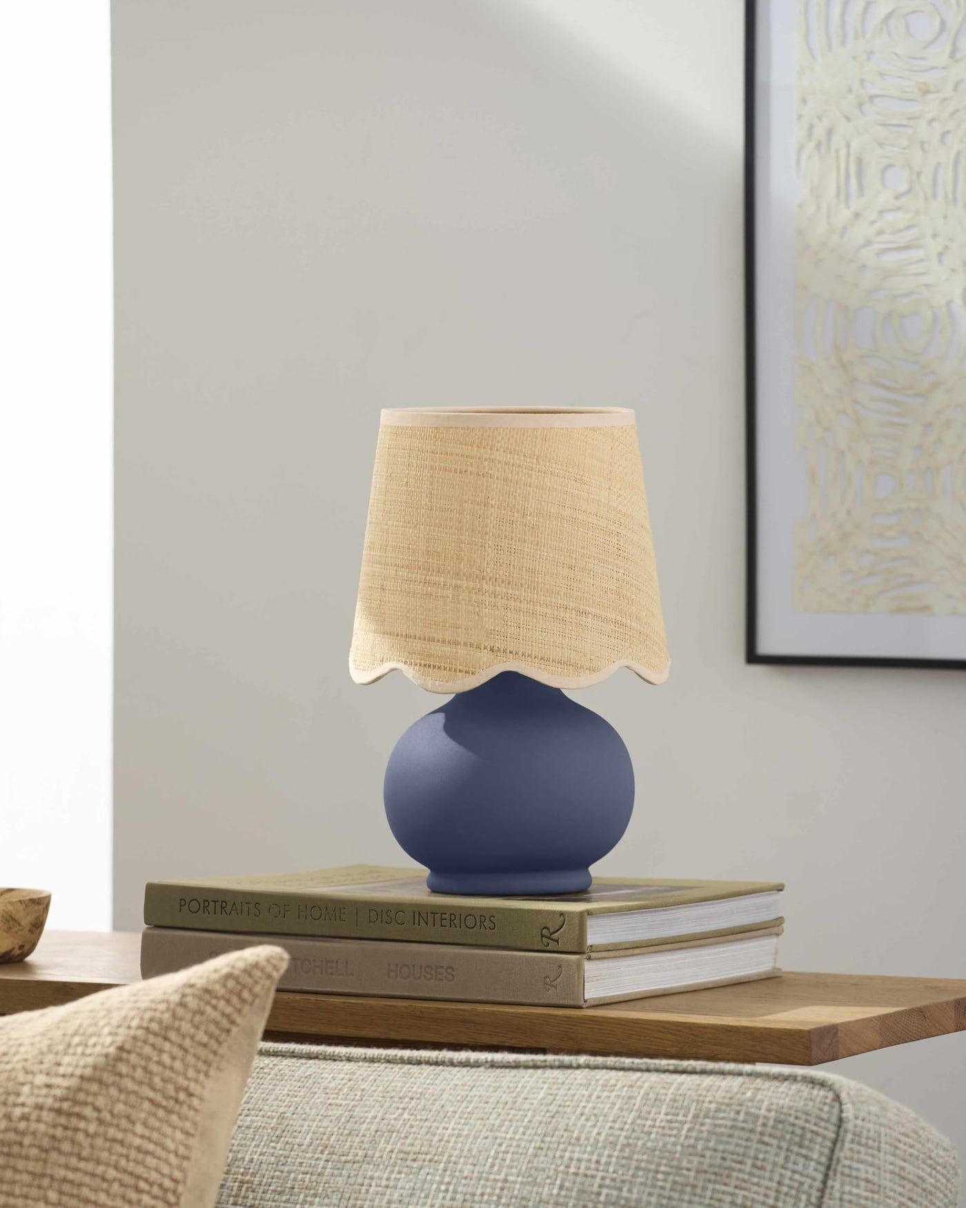 Boutiquerugs Theisseil Boho Ceramic Bedside Table Lamp For Bedroom Nightstand And Living Room - Shade Rattan - Blue, Beige - 13'