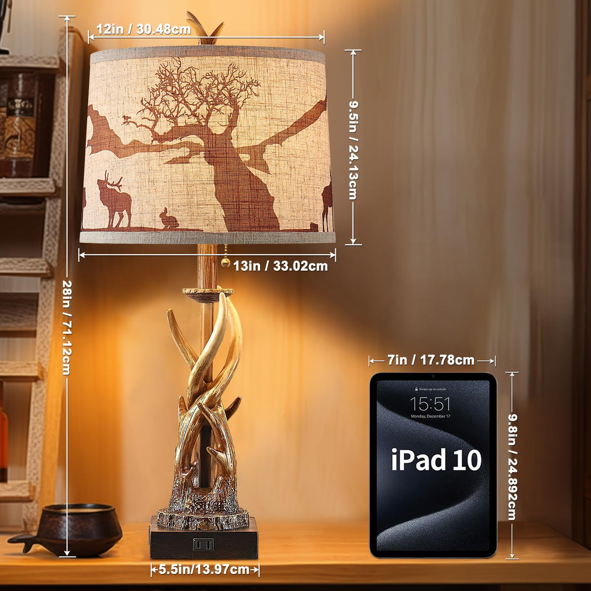 Bowobo Antler Table Lamps Set Of 2 For Bedroom, Farmhouse Rustic Antler Deer Bedside Lamps With Usb A+C Ports For Living Room En
