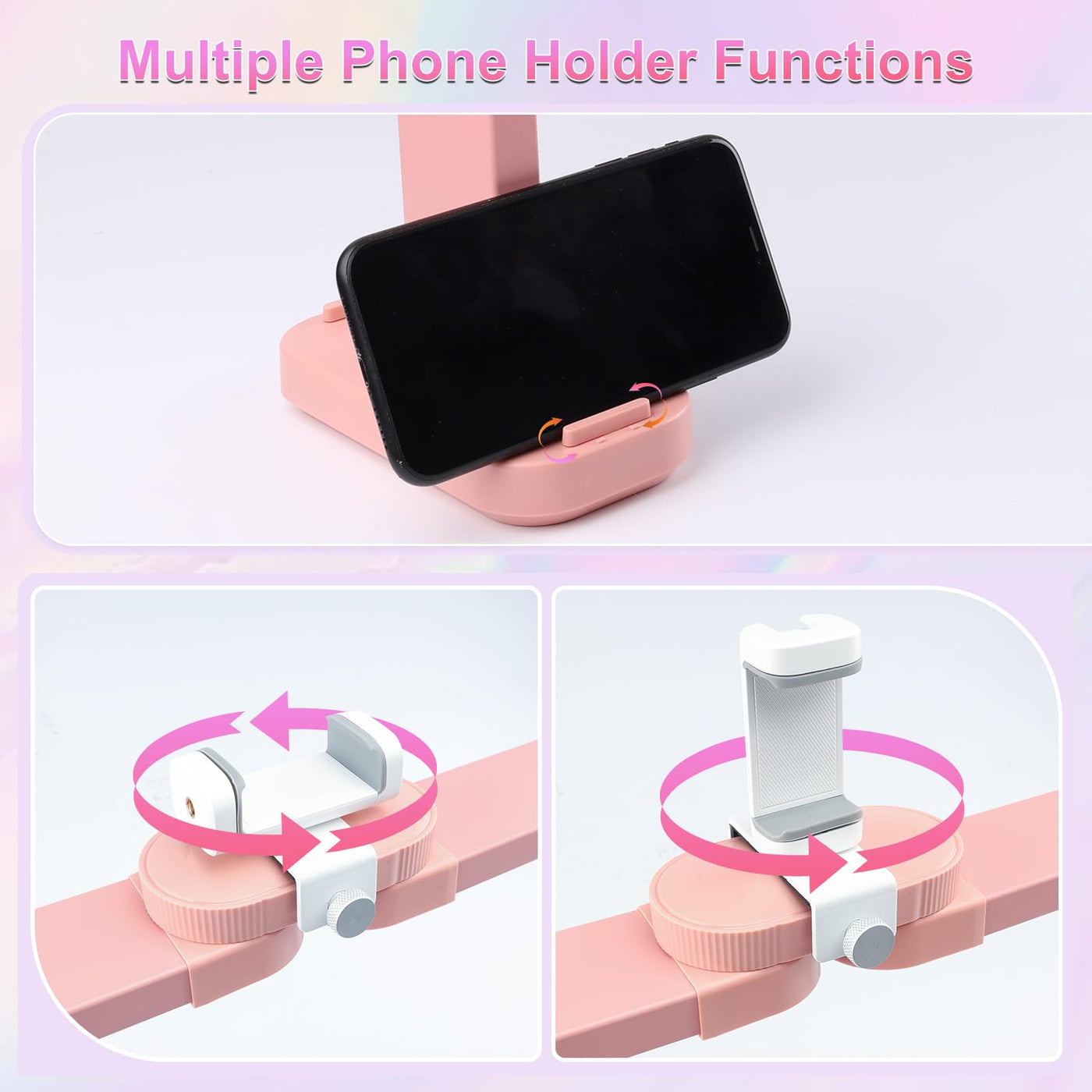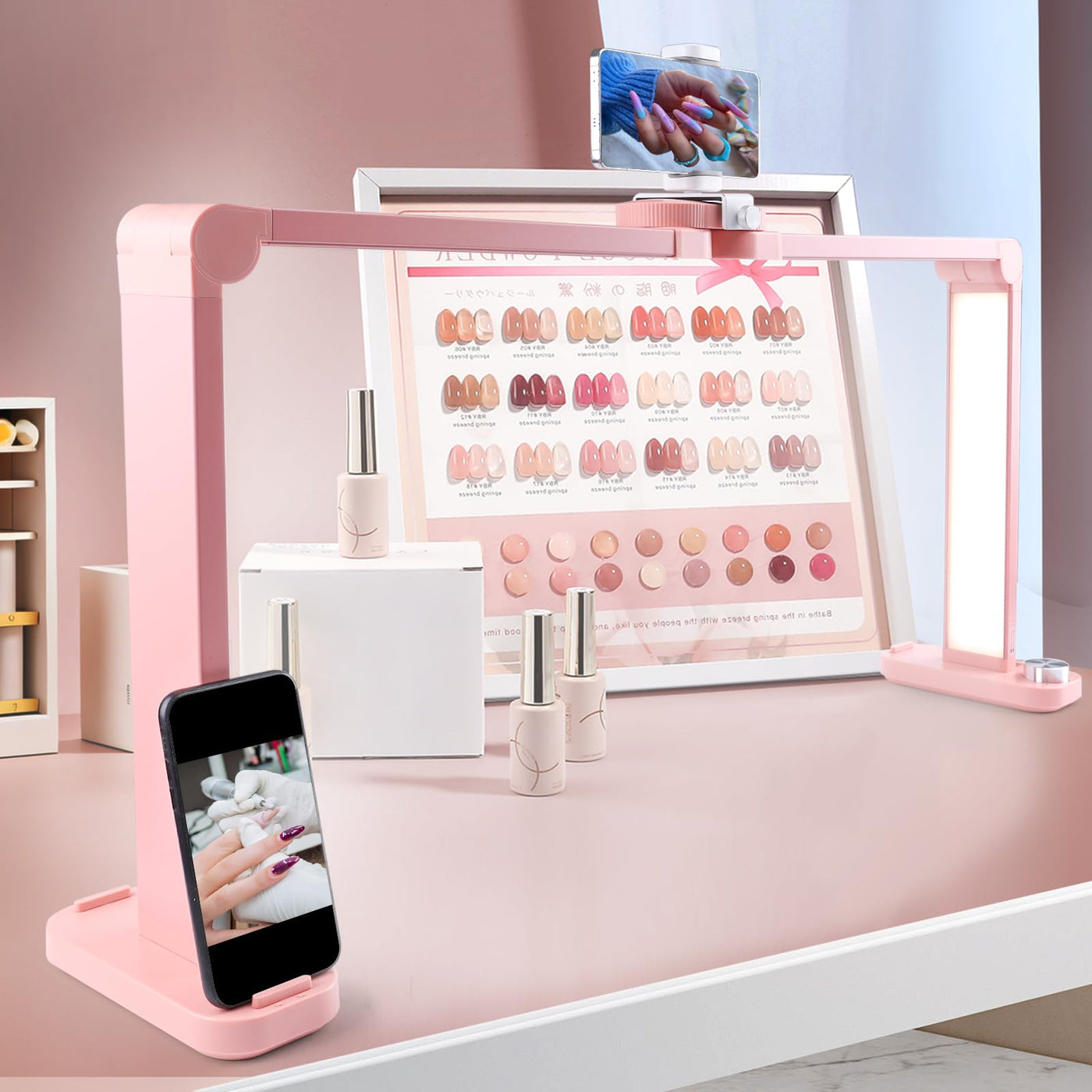 Bqan Nail Tech Lamp For Desk With Phone Holder, 33'' 40W Foldable Table Lamp For Nail, Lash Eyelash Extension, Tattoo - 3 Modes