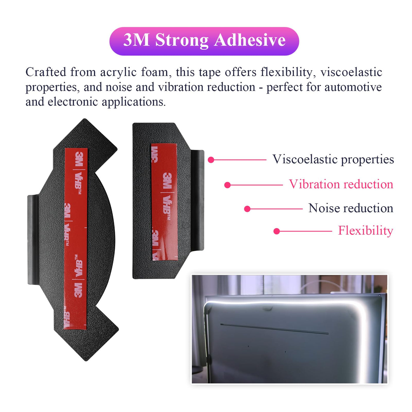 Q: Are the adhesive strips strong enough to hold the brackets securely?A: Yes, the 3M adhesive strips are crafted from acrylic foam offering strong adhesion, flexibility, and noise reduction, making them ideal for securely holding the brackets in place.