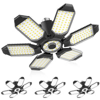 Q: How does the deformable design of this garage light enhance its functionality?A: The deformable design of the BRAINIAC garage light includes 6 adjustable panels that can be tilted from 0° to 90°, allowing you to direct light exactly where it's needed. This unique feature maximizes coverage and ensures that no dark spots are left, making it ideal for large areas such as garages, workshops, and basements.