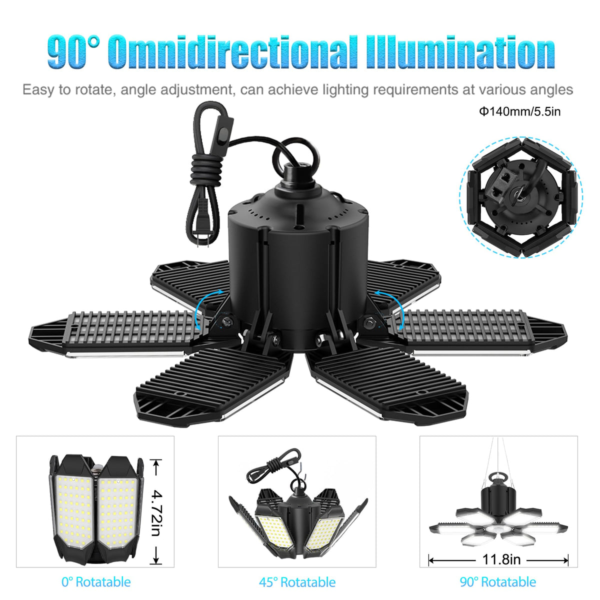 Introducing The Brainiac Motion Sensor Garage Lights Ceiling Led, A Versatile And Energy-Saving Lighting Solution Designed To Enhance The Safety And Convenience Of Your Indoor Spaces. With Its Smart Motion Detection Feature, Advanced Pir And Photocell Sensor With A Motion Detection Distance Of About 15 Feet And Provide A Wide 360? Sensing Angle. When Motion Is Detected In The Dark, This Garage Lights Ceiling Led Motion Activated Automatically Turns On, Offering Peace Of Mind And Increased Security. Featuring 312 Energy-Saving Led Chips, This Garage Light Delivers An Outstanding Brightness Of 150W (15000Lm), Not Only Does It Provide Excellent Illumination, But It Also Consumes Over 80% Less Electricity Than Traditional Bulbs, Making It An Eco-Friendly Choice. The 6500K Daylight Color Temperature Provides A Clear And Comfortable Lighting Effect. Three Switch Modes Offer Flexibility For Different Lighting Needs. ''I'' Mode Functions As A Normal Light Controlled With A Wall Switch, ''O'' Mode Keeps The Light Off, And ''Ii'' Mode Activates The Sensing Mode For Energy-Efficient Operation. The Light Triggers Only When Motion Is Detected In A Dim Or Dark Environment And Turns Off If No Motion Is Activated Within 60 Seconds. Designed With 6 Adjustable Panels + 1 Central Panel, You Have The Freedom To Adjust The Angle From 0? To 90?, Ensuring The Perfect Lighting Direction That Suits Your Needs. Its Unique Wide-Angle Design Eliminates Dark Spaces, Ghosting, And Glare, Providing A Fully Illuminated Area. Additionally, The High Temperature And Corrosion Resistance, Along With The Hollow Structure Design, Promote Efficient Heat Dissipation, Maximizing Performance And Longevity With A Service Life Of Up To 50,000 Hours. Installation Is Quick And Easy - Simply Screw Into A Standard E26/E27 Base Without The Need For Tools Or Wiring. This Motion Sensor Garage Light Is Perfect For Garages, Shops, Porches, Stairs, Or Any Indoor Space Where Automatic Lighting Convenience And Improved Security Are Desired. It Improves Visibility, Enhances Security, And Provides Ultimate Lighting Convenience. The Brainiac Motion Sensor Garage Lights Ceiling Led Is Suitable For Homeowners, Diy Enthusiasts, Automobile Enthusiasts, And Anyone Who Seeks Convenient And Energy-Efficient Lighting Solutions For Their Indoor Spaces. Whether You Need Reliable Illumination For Your Garage, Workshop, Basement, Or Storage Room, This Versatile Light Will Meet Your Needs And Exceed Your Expectations.