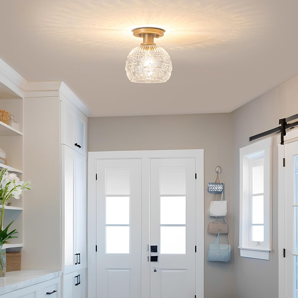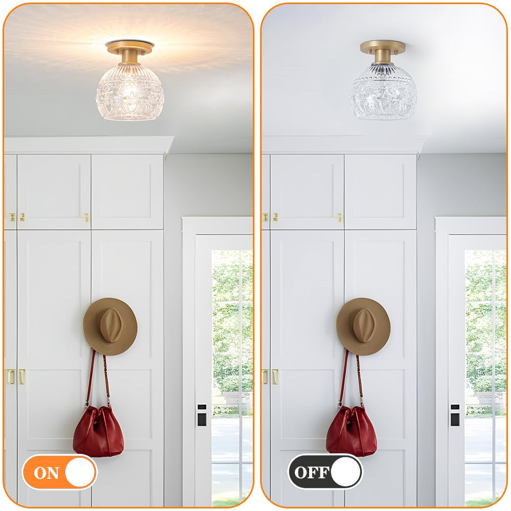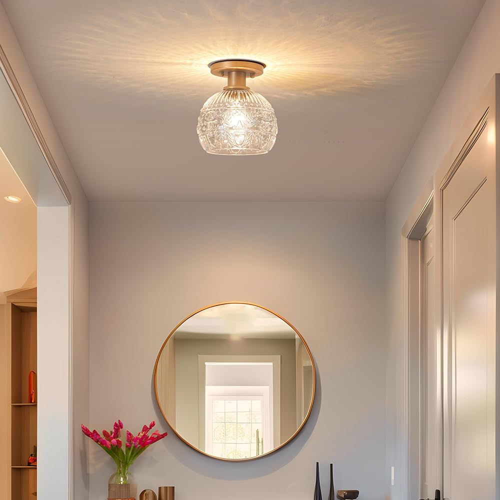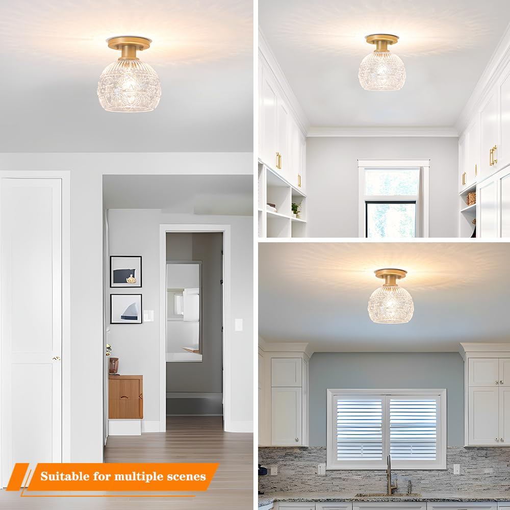 Brass Gold Semi Flush Mount Ceiling Light Fixture, Farmhouse Bathroom Light With Globe Glass Shade, Vintage Hallway Lights Fixtu