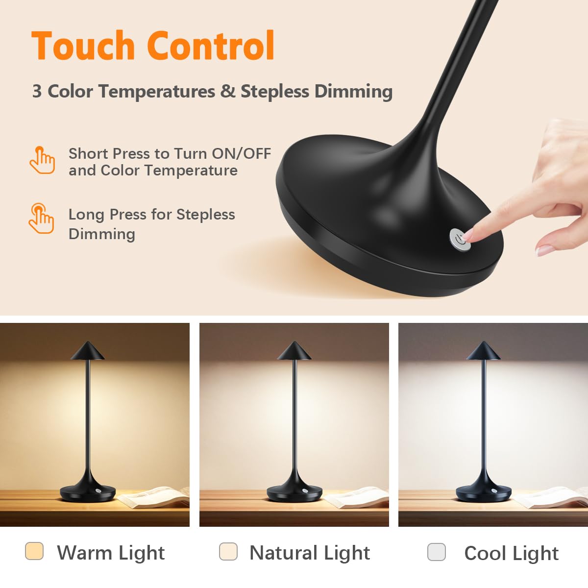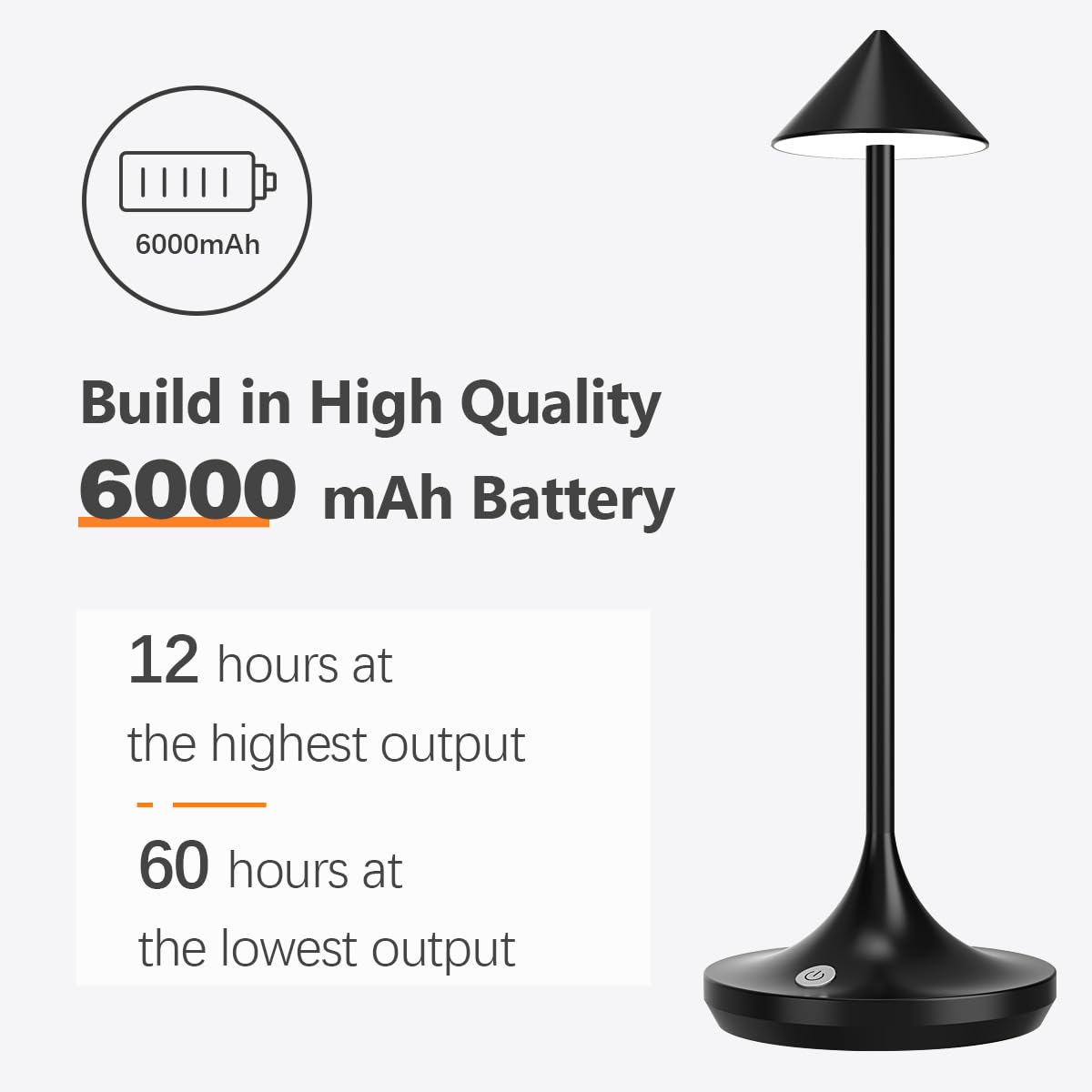 - **Long Battery Life**: Powered by a high-capacity 6000mAh polymer battery, this rechargeable lamp offers an impressive runtime of 12 to 60 hours on a single charge. With USB-C fast charging, it reaches full capacity in just 4-5 hours, ensuring it's ready whenever you need it.