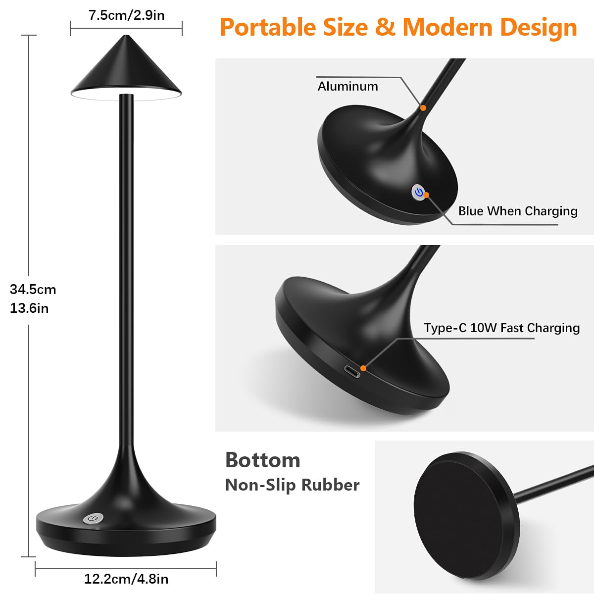 - **Fashionable and Elegant Design**: This modern table lamp features a sleek, streamlined form with dimensions of 13.6 inches in height and a base diameter of 4.8 inches. Its compact size and lightweight design make it an eye-catching addition to any setting, including restaurants, bedside tables, and dining areas.