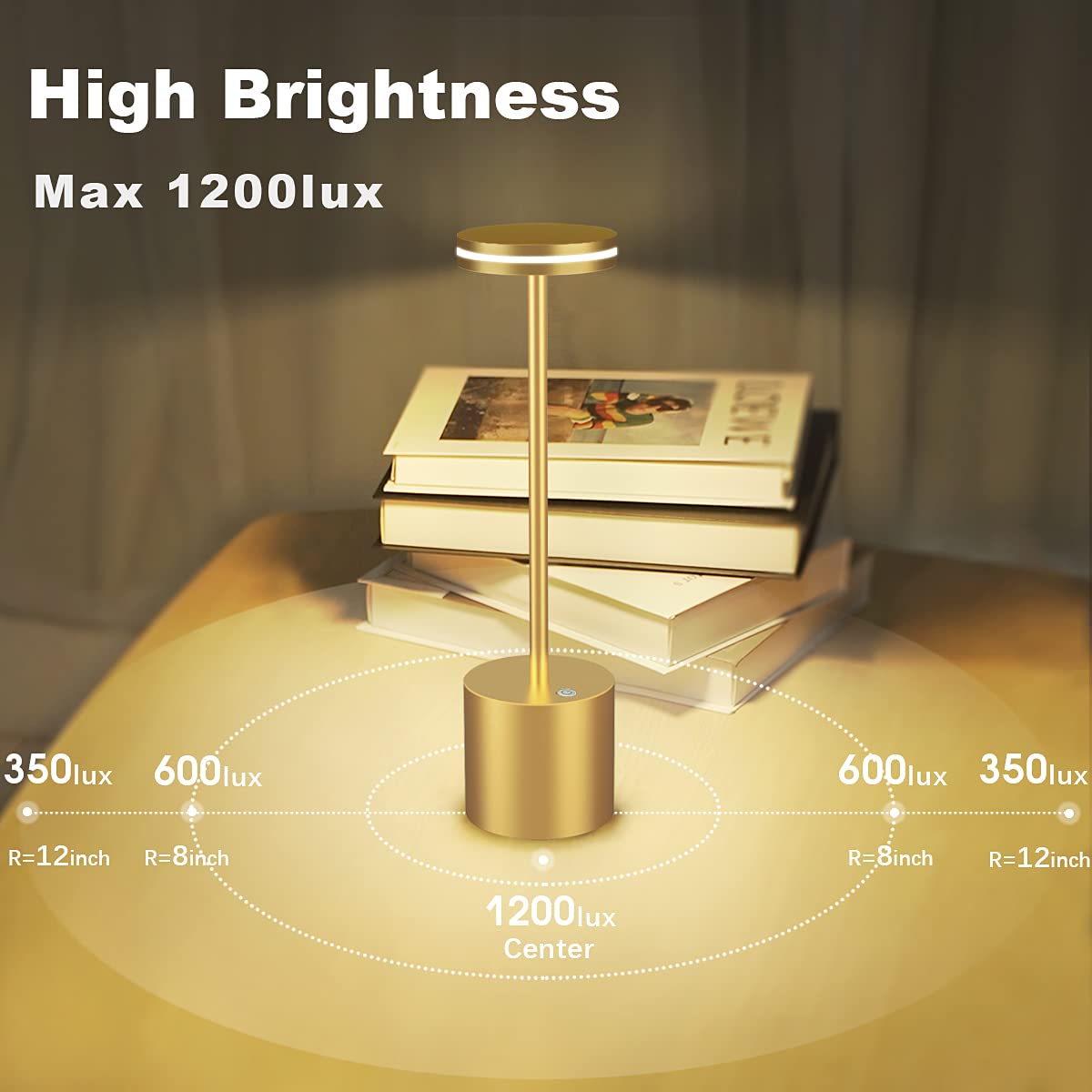- **Minimalist Design**: Crafted from durable aluminum alloy with a silicone non-slip base, this stylish cordless LED table lamp features smooth and slender metal arms, making it a perfect addition to any decor. Its elegant gold finish adds a touch of sophistication, ideal for both indoor and outdoor settings.