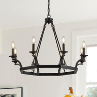 Brfaixla 8 Lights Wagon Wheel Chandelier 33'' Rustic Black Metal Ceiling Pendant Chandelier Hanging Lights Industrial For Kitche