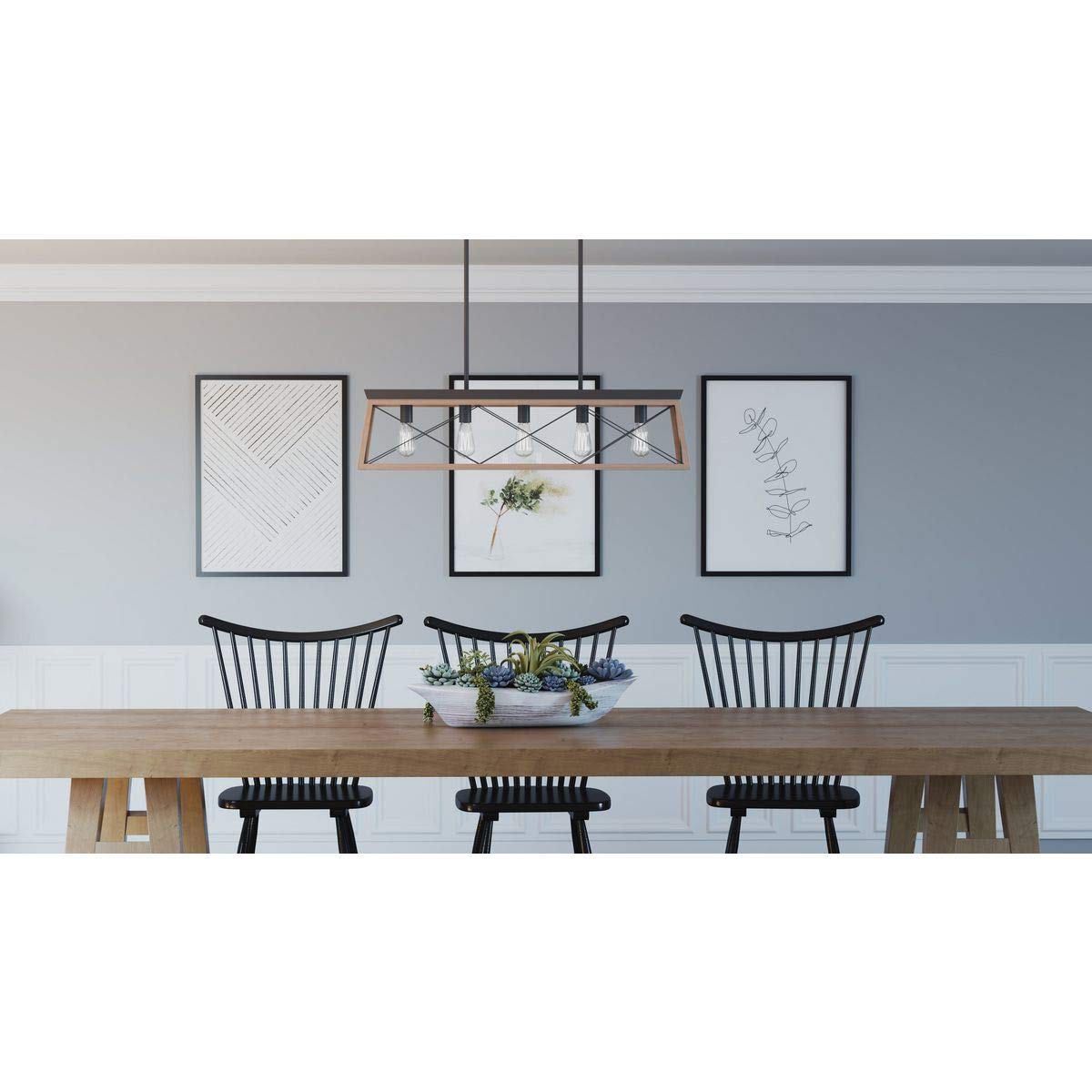 Create a cozy and comfortable home atmosphere with the classic barn-like touch of the Briarwood Collection Rich Oak Five-Light Rustic Linear Chandelier. The open-caged light fixture features a faux-wood frame with a rich painted-oak finish. A farmhouse-inspired X-brace design stretches across each side of the frame recalling old barn doors and rustic farmhouse gates. From inside the enclosure peeks metal light bases waiting to hold light sources as they exude a comforting country glow. An antique bronze plate accents the top of the structure as thin metal bars anchor the rustic light fixture to the ceiling. For optimal illumination, the chandelier uses five medium base bulbs that are sold separately (100w max - LED or incandescent). Incorporate clear light bulbs for a pinch of contemporary shine or opt for vintage bulbs to enhance the light fixtures rustic demeanor. The chandelier is compatible with dimmable bulbs and offers endless versatility when it comes to finding a place in your home d cor vision. The chandeliers farmhouse-inspired design is ideal for any dining room, foyer, great room, or kitchen in coastal, craftsman, farmhouse, rustic, urban industrial, and vintage electric interiors. Its time to breathe new life into the mundane every day with timeless and truly transformative lighting. Make your purchase today to begin your journey to a whole new lighting experience. Progress Lighting products are designed for exceptional quality, reliability, and functionality.