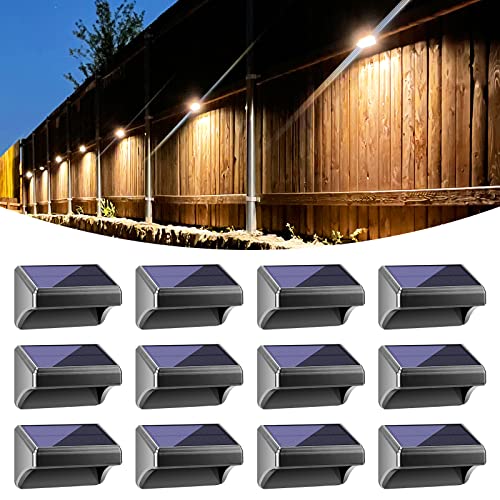 Bridika Solar Fence Lights (12 Pack) - Waterproof Warm & Cool White Outdoor Wall Lights