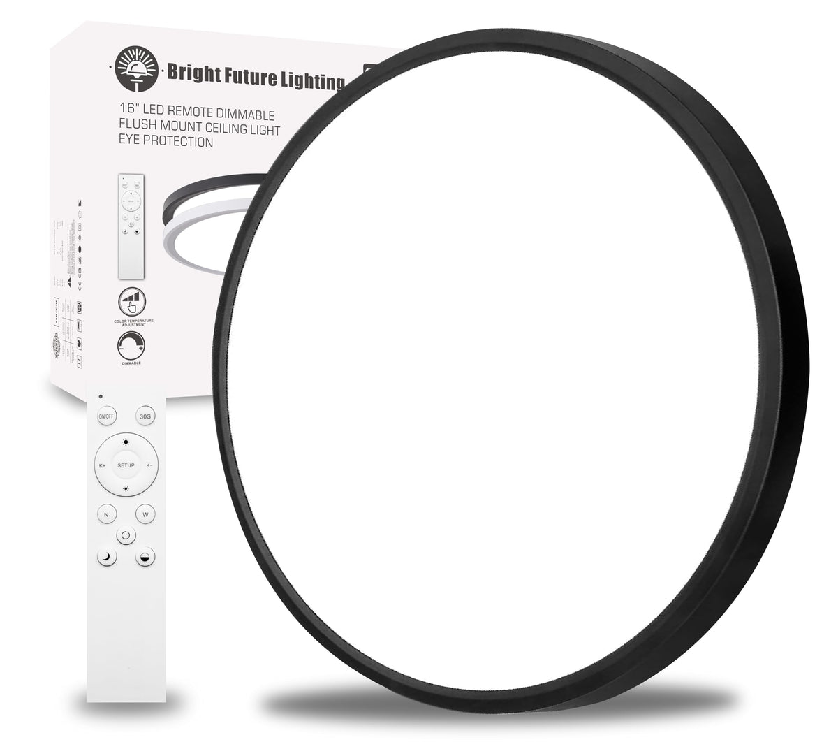 Bright Future Lighting 20 Inch LED Flush Mount Ceiling Light, 40W, Dimmable, Adjustable Color, Black, Model BFL20RD-D500H25-40W