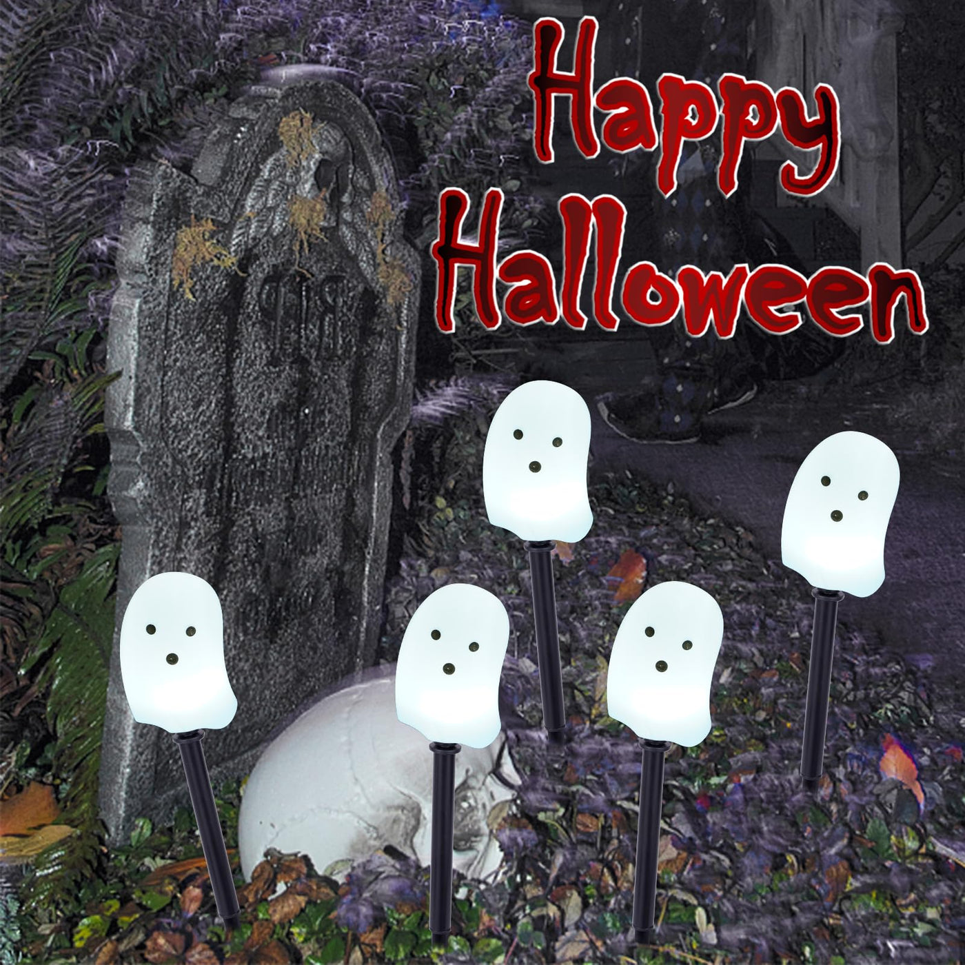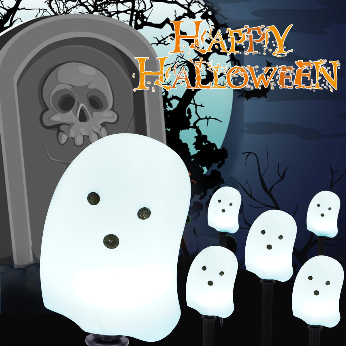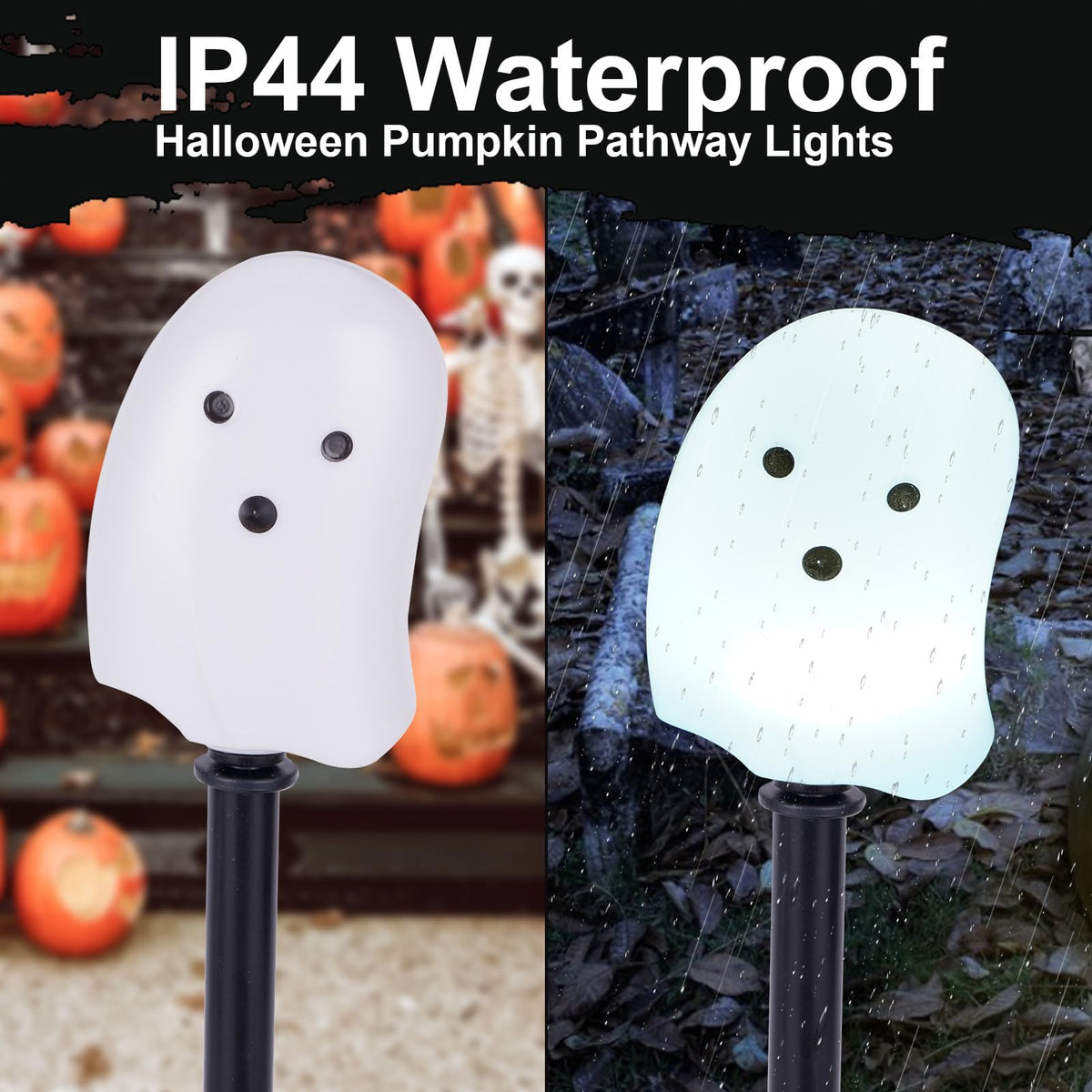 Q: Are the ghost pathway lights waterproof and suitable for outdoor use?A: Yes, these ghost pathway lights are made from durable weather-resistant materials, making them waterproof and safe for outdoor environments, perfect for your Halloween decorations.