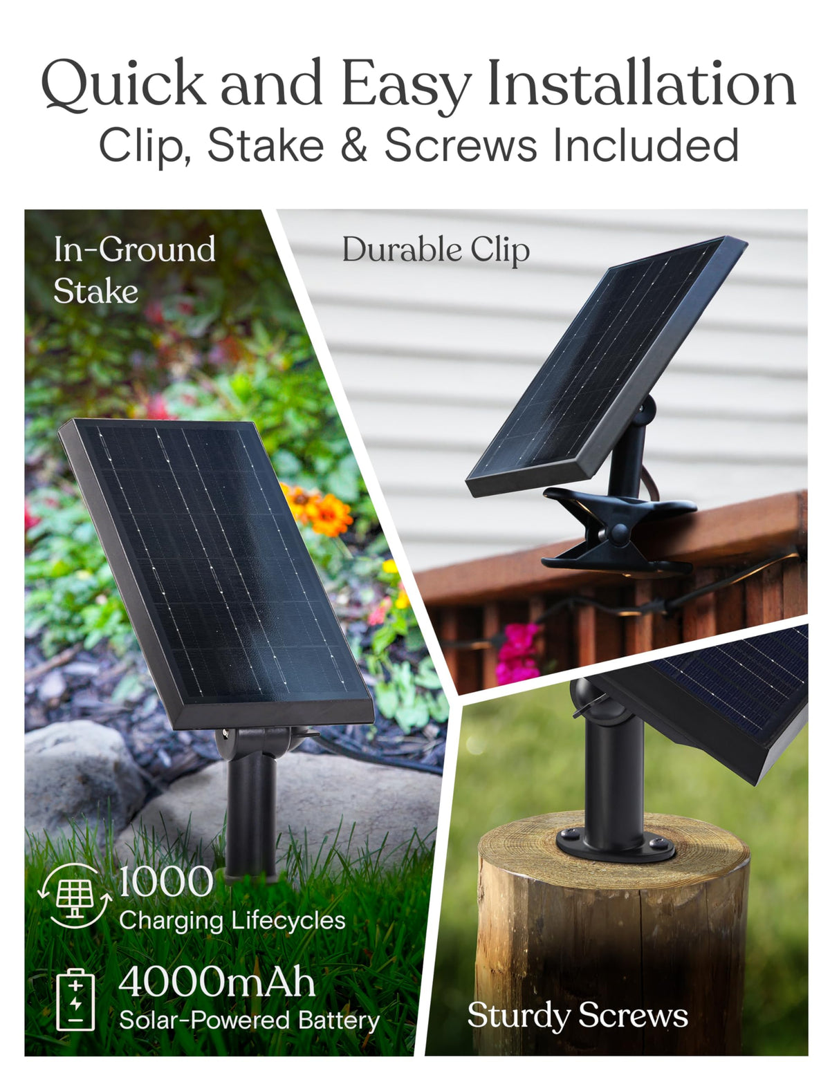 Q: How do I install the solar panel for the string lights?A: The solar panel can be easily installed outdoors using the included stake and clip, ensuring it receives direct sunlight for optimal charging.
