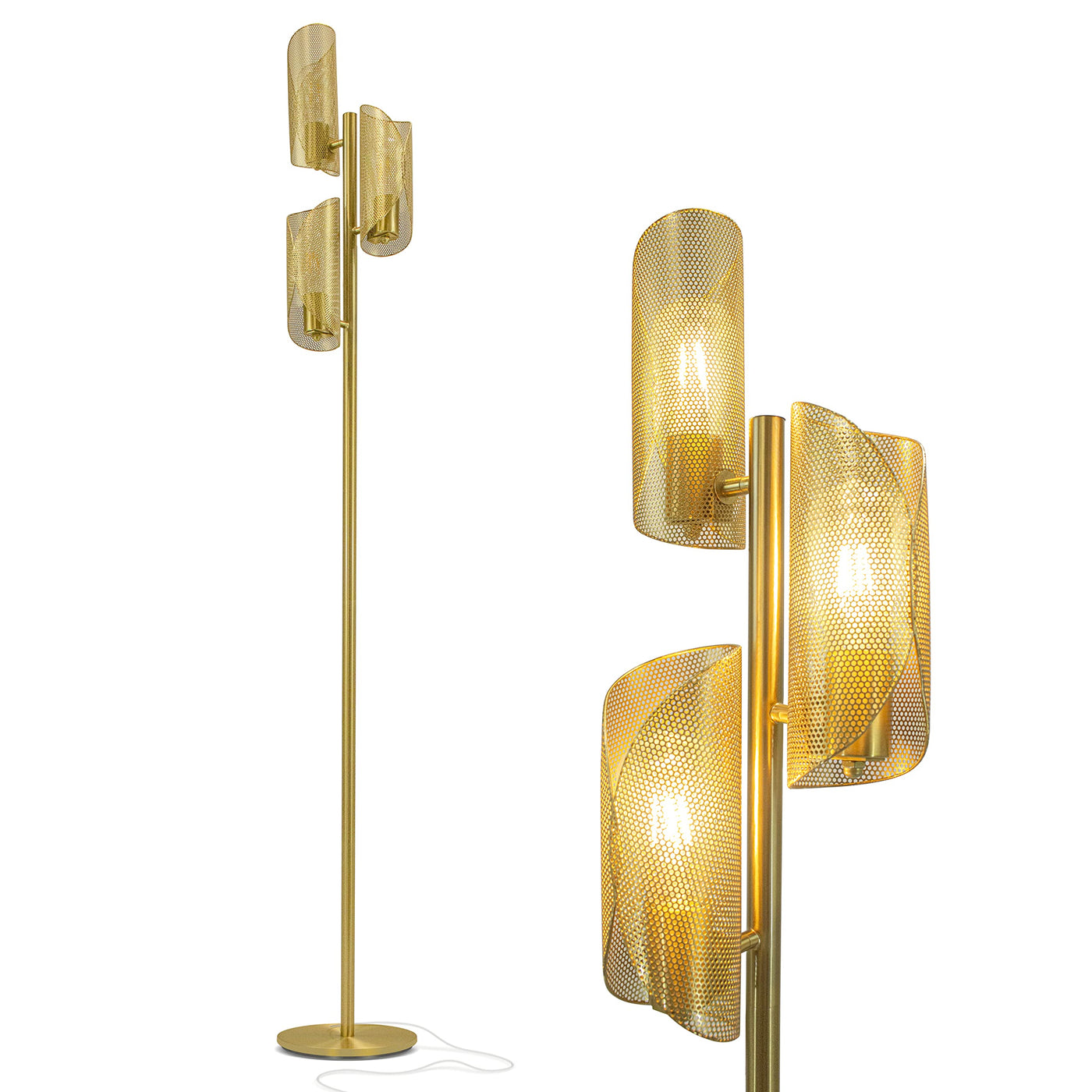 The Brightech Lyra Is A Sleek 3 Light Head Floor Lamp With A Contemporary Feel For Use In Any Room. It Has A Design That Fits A Variety Of Living Room Decors And A Look That Is Upscale While Being Entirely Affordable. The Tall Lamp Fits Well In Living Rooms, Bedrooms, And Offices With A Bright Light And A Distinct Style. It Easily Adds Depth To Farmhouse, Rustic, Industrial, And Art Deco Homes. The Standing Lamp Has Curved-Grid Brass Shades And A Sleek Golden Stem For An Elegant Feel. This Modern Floor Lamp Has Three Rotatable Fixtures That Turn Almost 360 Degrees To Light Up Any Area Of The Room. Beam One Light At The Couch, Another At Reading Material, And The Other At A Dark Spot In The Room. The Led Tall Lamp Has Gorgeous Architectural Lines And Fits Into Small Spaces. It Works Well For Tall Ceilings With A 72 Height. The Floor Lamp Has A Sturdy Base Thats Nearly Impossible To Tip Over For Use In Nurseries And Playrooms. Energy-Saving Led Bulbs Are Included In The Standing Lamp And Can Save You Money Or Halogen And Incandescent Versions. Add A Touch Of Class To Your Room With The Brightech Lyra Standing Lamp.