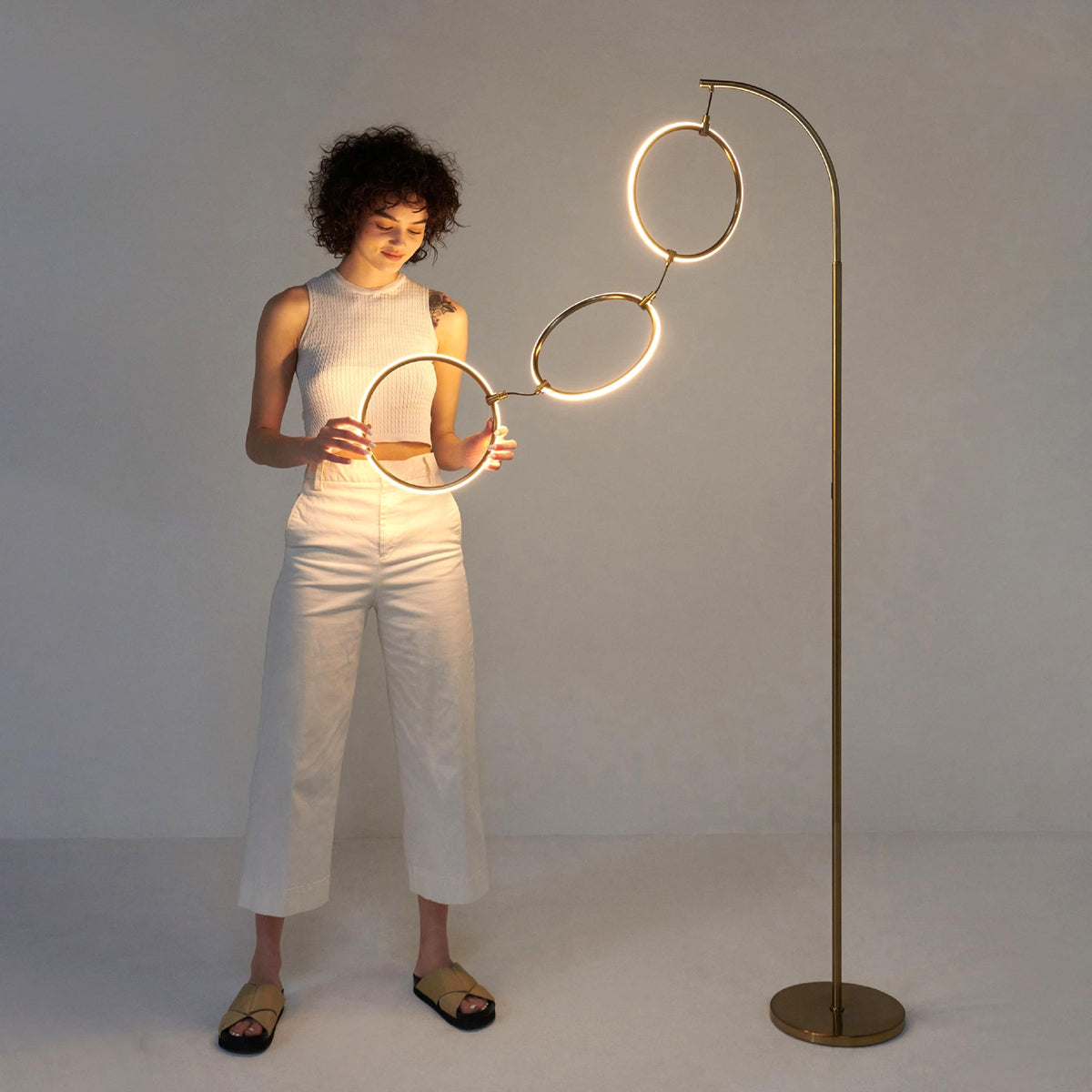 The Brightech Nova Floor Lamp features a curved brass stem and three elegantly hanging light rings, delivering a distinct aesthetic that rivals much more expensive lighting options. Equipped with a built-in dimmable touch switch, this lamp allows for convenient lighting adjustments to suit any mood or occasion. The integrated LED light provides excellent illumination while ensuring you enjoy years of reliable use, with bulbs that last up to 20,000 hours. Enjoy significant energy savings as this modern floor lamp consumes less electricity than traditional incandescent and halogen bulbs, effectively reducing your utility bills.