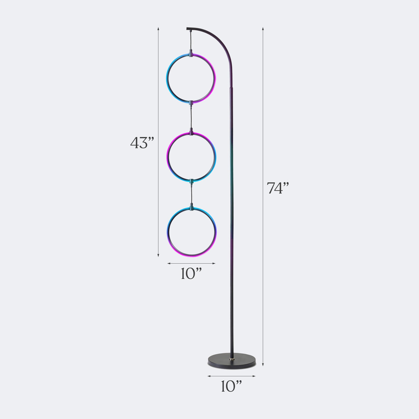 Brightech Nova Modern Color Changing Floor Lamp - Tall Lamp With Stunning Rgb Color Gradient And Contemporary 3-Circle Ring-Style Pendant - Corner Or Over-The-Couch Arching Pole Standing Lamp - Black