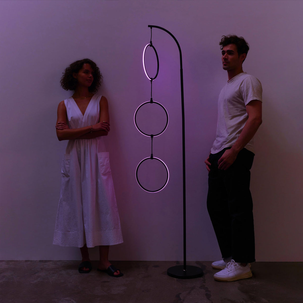 Brightech Nova Modern Color Changing Floor Lamp - Led Lamp With Stunning Rgb Color Gradient And Contemporary 3-Circle Ring-Style