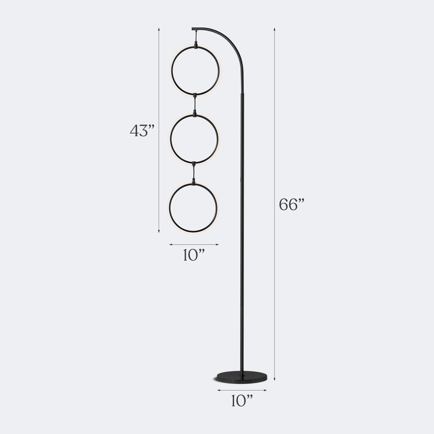 Brightech Nova Modern Floor Lamp Matches Living Room D Cor - Contemporary Arc Tall Lamp With 3-Circle Ring-Style Pendant - Over The Couch Standing On Arching Pole - Eclectic- Black