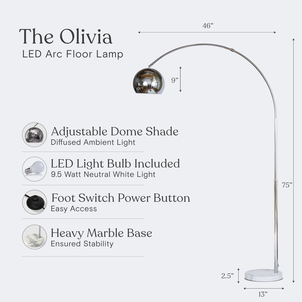 Brightech Olivia Floor Lamp, Arc Lamp For Living Rooms, Standing Lamp With Led Light Bulbs For Bedroom Reading, Great Living Roo