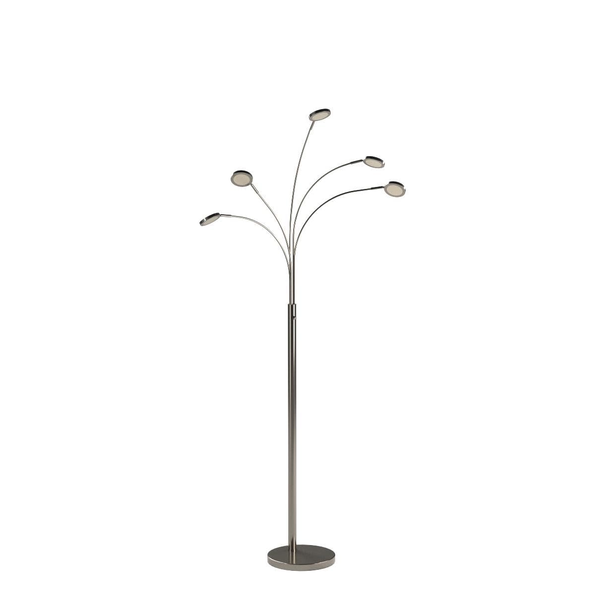 Elegant and trim in a satin nickel finish or in an oil-brushed bronze, the standing modern floor lamp blazes brightly with a total of 2,250 lumens (450 per lamp head). The rotating individual light orbs mesmerize like stars in the sky! But they’re LED lights, so they stay cool to the touch, won't overheat a room, and will use very little energy during their 20-year lifespan, giving you years of savings. Each head draws only 4.5 watts, for a total of 22.5 watts, compared to the expensive, heat-producing incandescent bulbs. Please note that the lamp cannot be dimmed; it always operates at full intensity.
