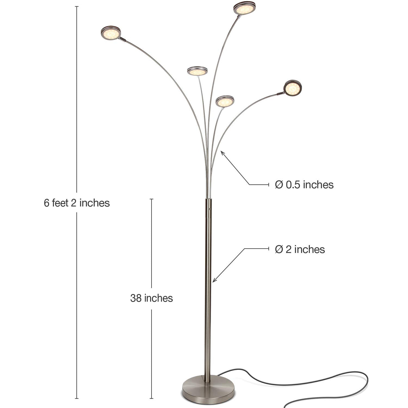 Brilliant LED Lighting: The Brightech arched floor lamp with built-in rotating LED lights emits 2,250 lumens (450 x 5 heads), illuminating your entire living room and bedroom.