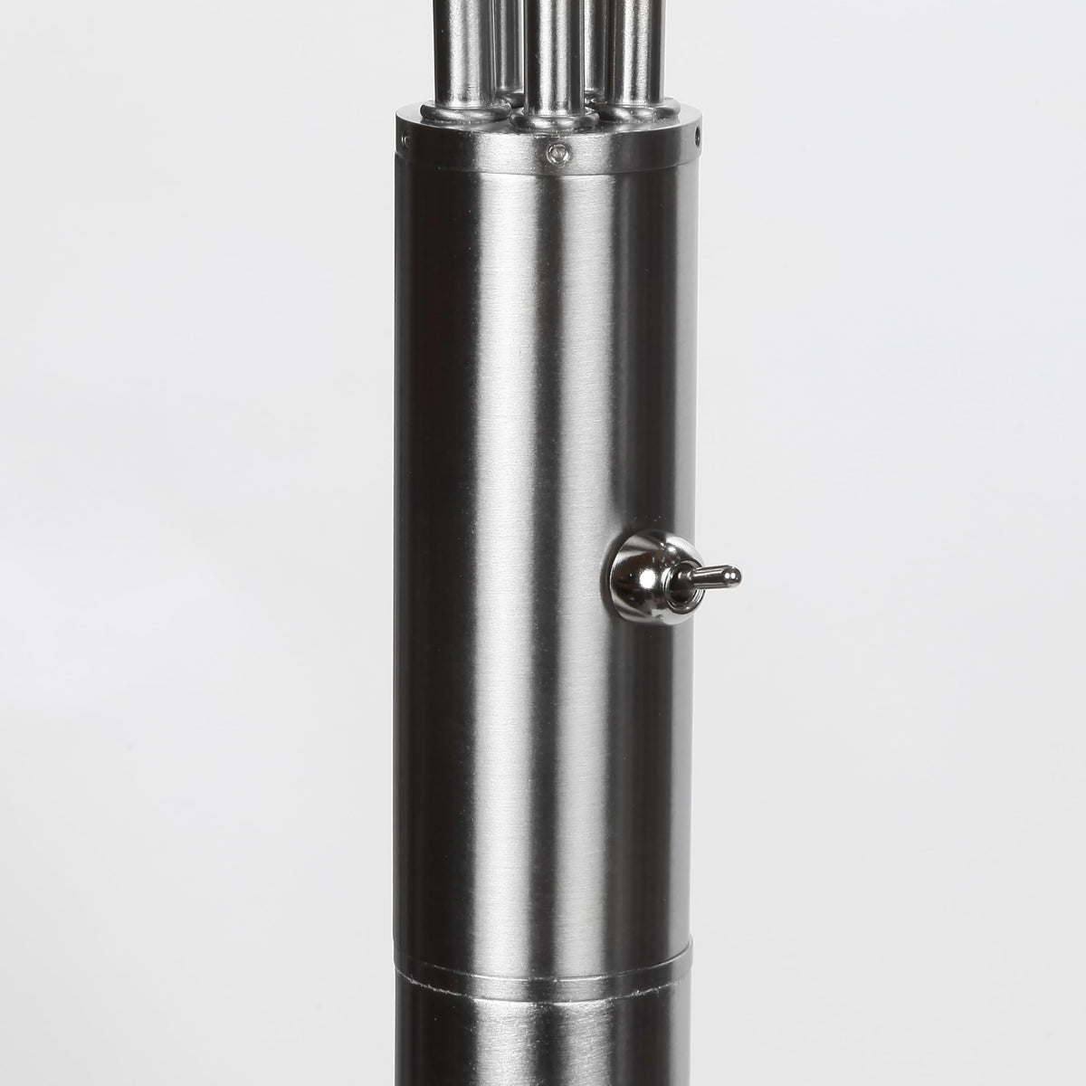 Sprouting up from a central pole, the 5 heads of this adjustable overhead arc tree floor lamp curve at different heights, each one slightly taller than the one before. A half-inch in diameter, the curve of the individual stems ranges between 35 to 46 inches. The Orion heads bobble and sway with around an inch or so of space between them – scattering light from the “stars” all around your living room! The pole of the arc floor lamp measures 38 inches long by 2 inches in diameter. Fully assembled, the corner standing lamp stands 6 feet, 2 inches tall. The heavily weighted, sturdy base circles nearly a foot in diameter and sits best on carpets or area rugs.