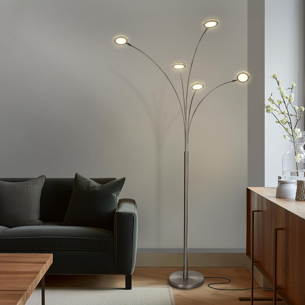 Brightech Orion Arc Floor Lamp - Satin Nickel, Tree Design with 5 Adjustable Arms, Flexible LEDs for Living Room & Bedroom Lighting