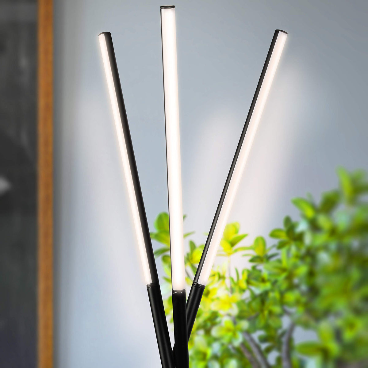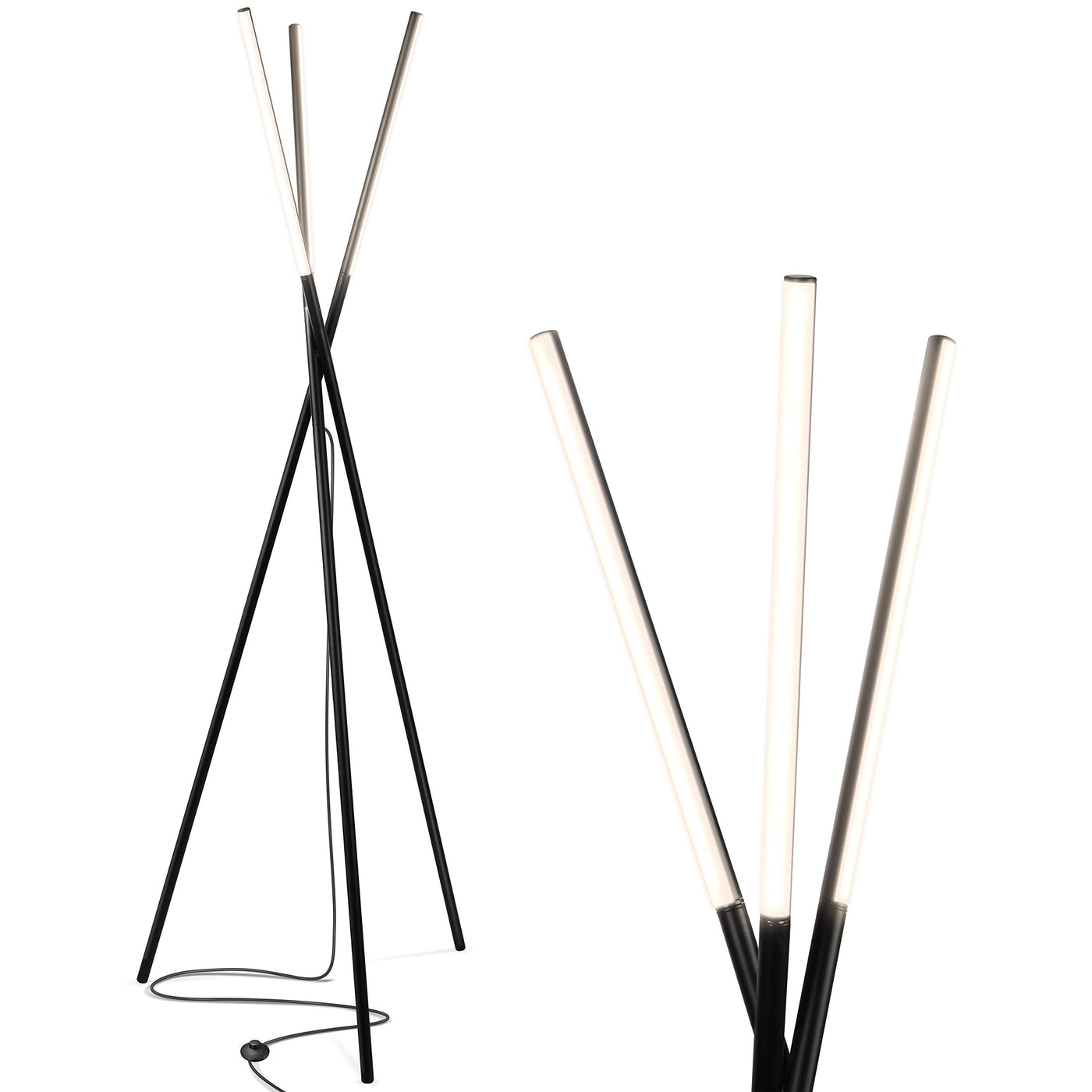 Q: What type of bulbs does the Brightech Stix Floor Lamp use?A: The Brightech Stix Floor Lamp comes with three cylindrical LED bulbs that snap into the lamp. These LED bulbs are energy-efficient and can last up to 20 years when used for about 3 hours a day.