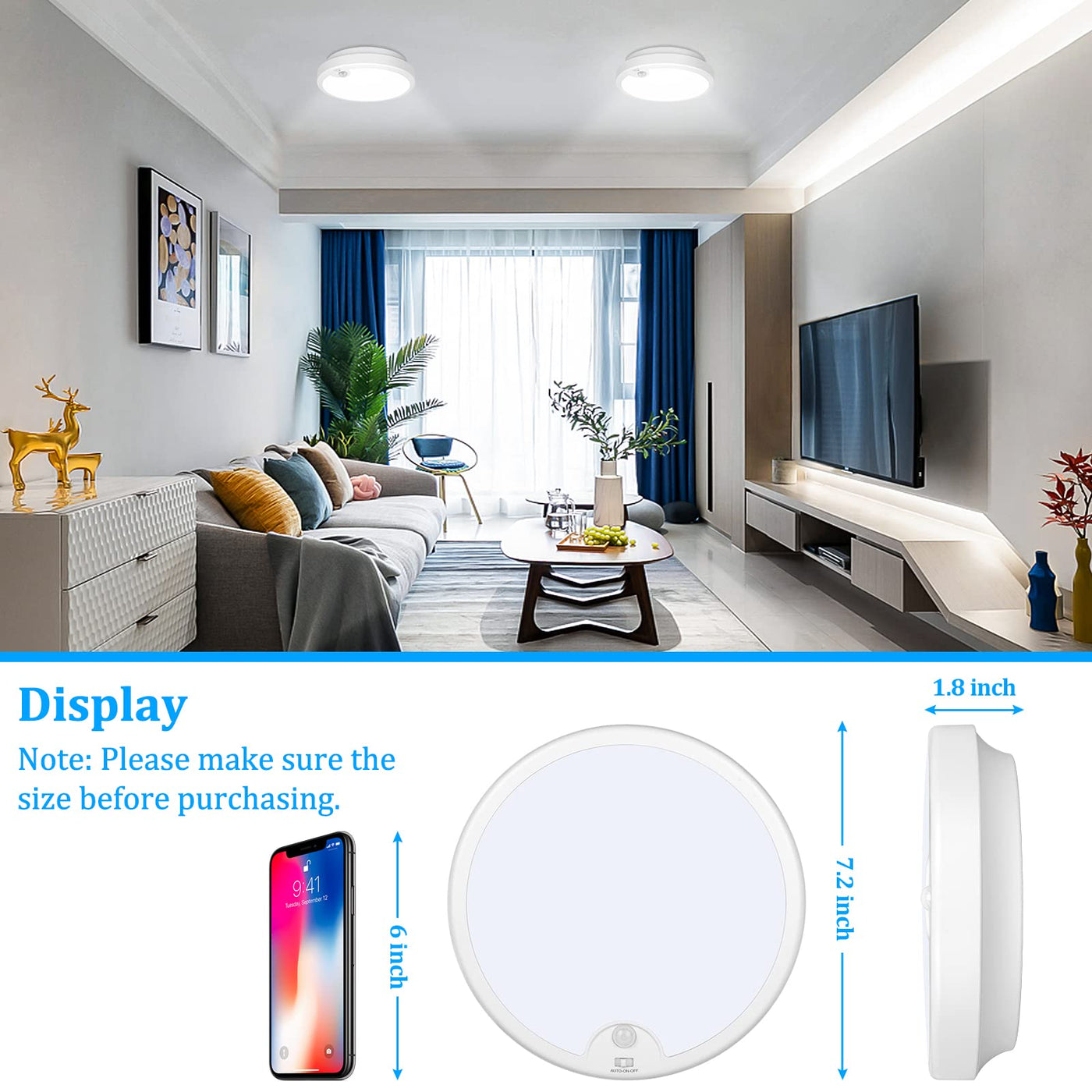 Brightever 2-Pack Motion Sensor LED Ceiling Light, 7.2in Flush Mount, 6000K Cool White, Model LJ-JC005, Wireless, 400LM