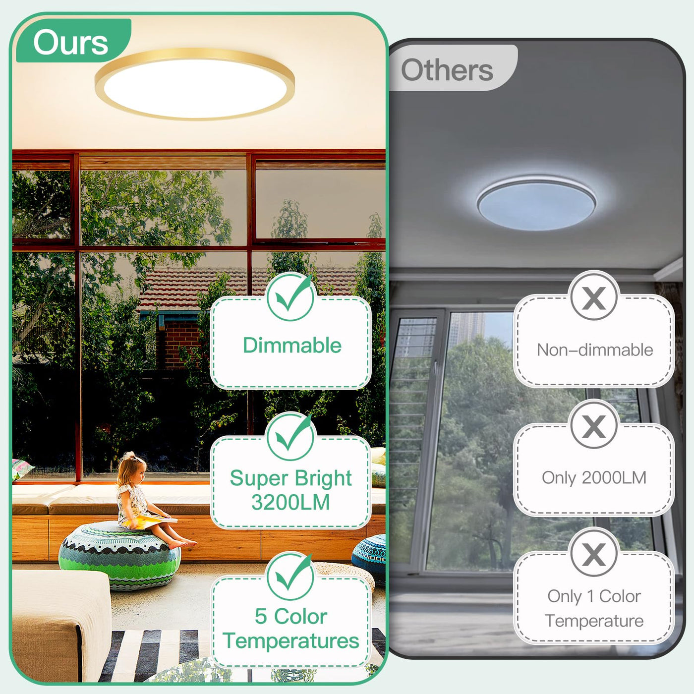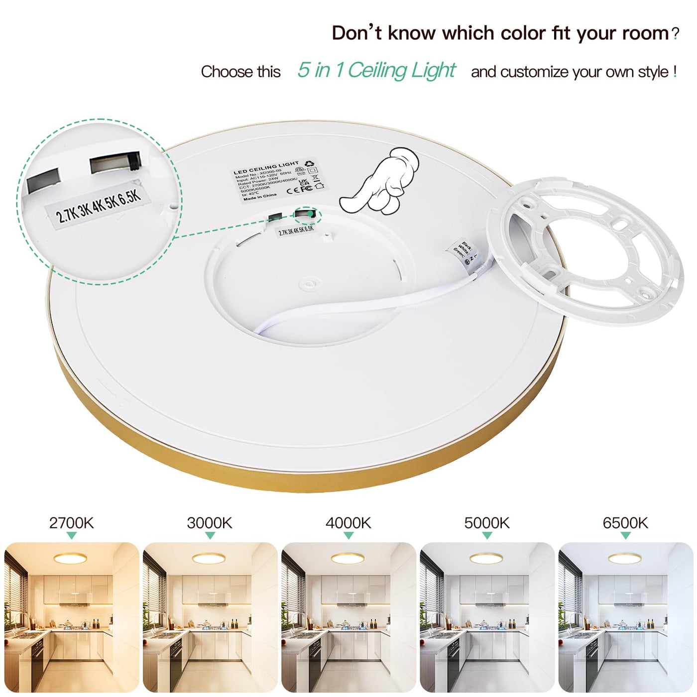 Are You Annoyed Of The Flicker And Feel Tired Of Your Eyes? Are You Tired Of Lights That Are Hard To Install And Waste You A Lot Of Time? Are You Frustrated With The High Lighting Bills? Then Brightever Flush Mount Led Ceiling Light Is The Ideal Choice For You! Brightever 24W 12 Inch 5Cct Led Ceiling Lights Are Big Improvement Based On Normal Led Ceiling Fixtures! ?Pretty Style: The enhanced Gold Minimalist Design Makes Your Decoration Style Look Very Beautiful. ?Safety Guarantee: With The Highest Level Fire Resistant Plastic Material You DonT Need To Worry About The Danger Of Fire Or Electric Leakage At All Protecting Your Safety Very Well. ?Good Eyes Protection: The well-made Led Emits Uniform Bright And Stable White Light No Flicker And Blue Light Avoiding Eyes Fatigue And Protects Your Eyes From Harsh Light. ?Energy Saving And Highly Efficient:Our Flush Mount Ceiling Fixtures Adopt 180Pcs well-made Smd2835 Lamp Beads That Provide Enough Brightness(Up To 3200Lm) Which Are Much Brighter Than Most Of Other 24W Ceiling Lights In This Size And Equivalent To 240W Traditional Incandescent Bulbs Offering You Higher Brightness And Saving You 90% Electricity Bills At The Same Time. We Have The Totally Upgraded 5Cct Function (2700K 3000K 4000K 5000K 6500K)To Better Meet Your Daily Needs In Different Occasions Like Living Room Bedroom Kitchen Bathroom Closets Hallway Stairwells Dining Room Workshop Garage. Installing Our Ceiling Lamp Is A Breeze. The Package Comes With All The Installation Accessories And Step-By-Step Instructions So You Can Easily Enhance Your Home Environment In Just A Few Minutes. We Also Use The Sealed Design To Prevent Dust From Entering The Light And Ensure No Black Spot On Light After Long-Time Using. Clean As Always.