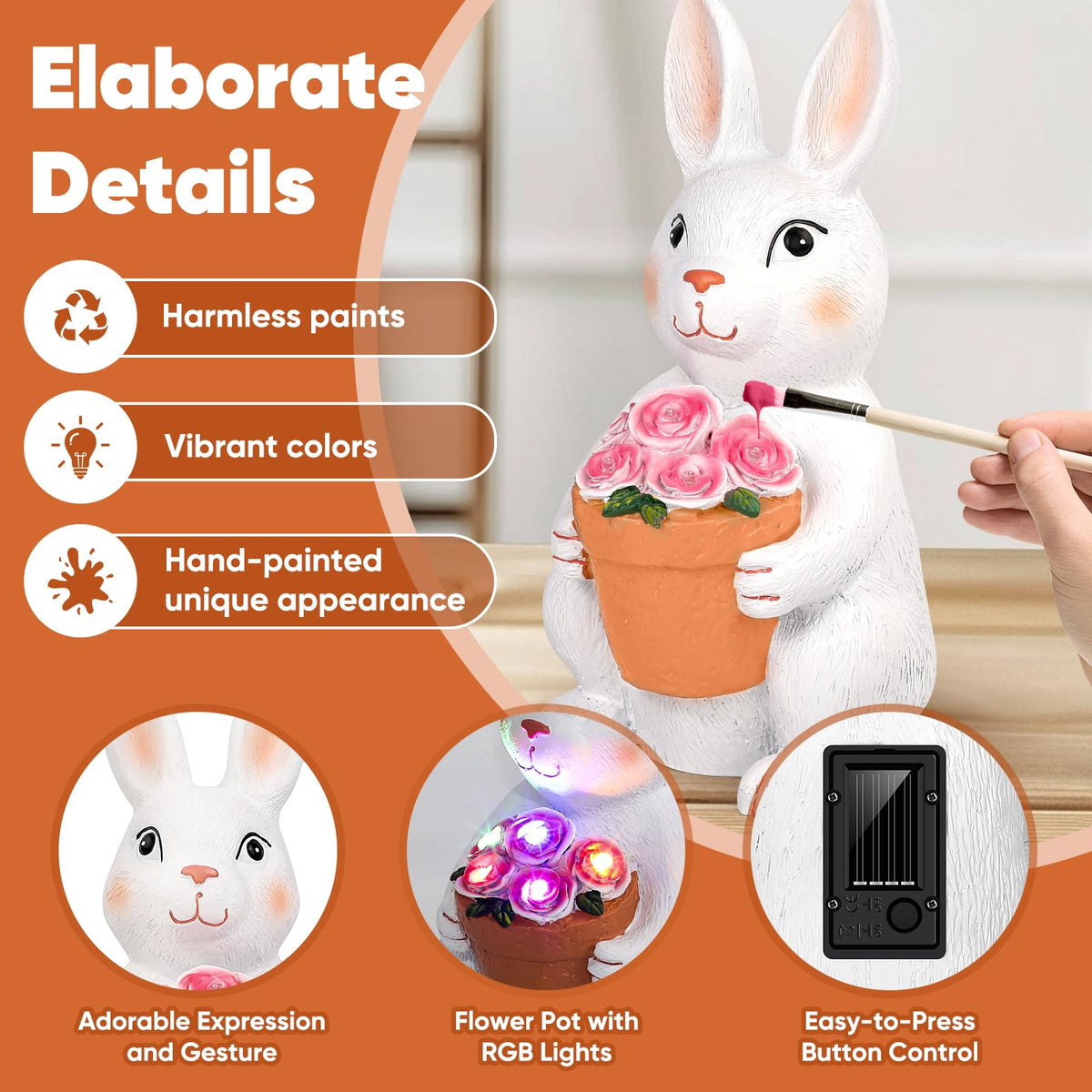 Brightever Solar Powered Outdoor Garden Statues- Rabbit With Flowers And 5 Colorful Led Lights, 11.8In Outdoor Figurine Lights,