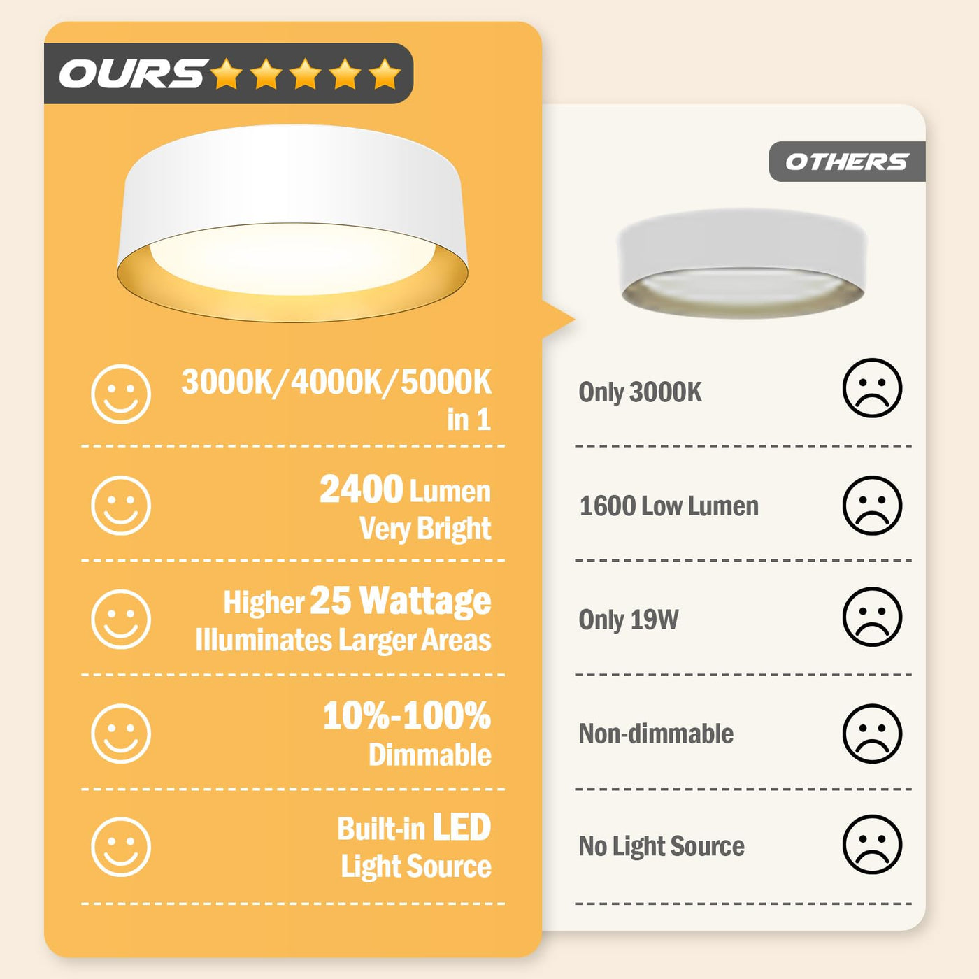 Brighthome Flush Mount Ceiling Light White, 25W Led Ceiling Light Fixture 250W Equivalent, Cct Adjustable 3000K 4000K 5000K, 13I