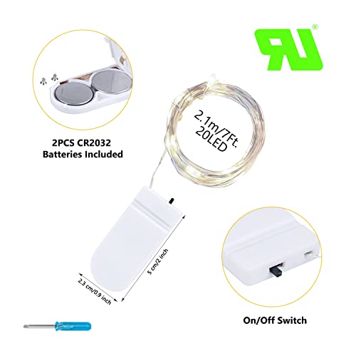 Brightown 24 Pack Fairy Lights Battery Operated - 7Ft 20 Led Mini String Lights Silver Wire Waterproof Firefly Starry Diy Lights For Bedroom Patio Wedding Party Christmas Decor (Pure White)
