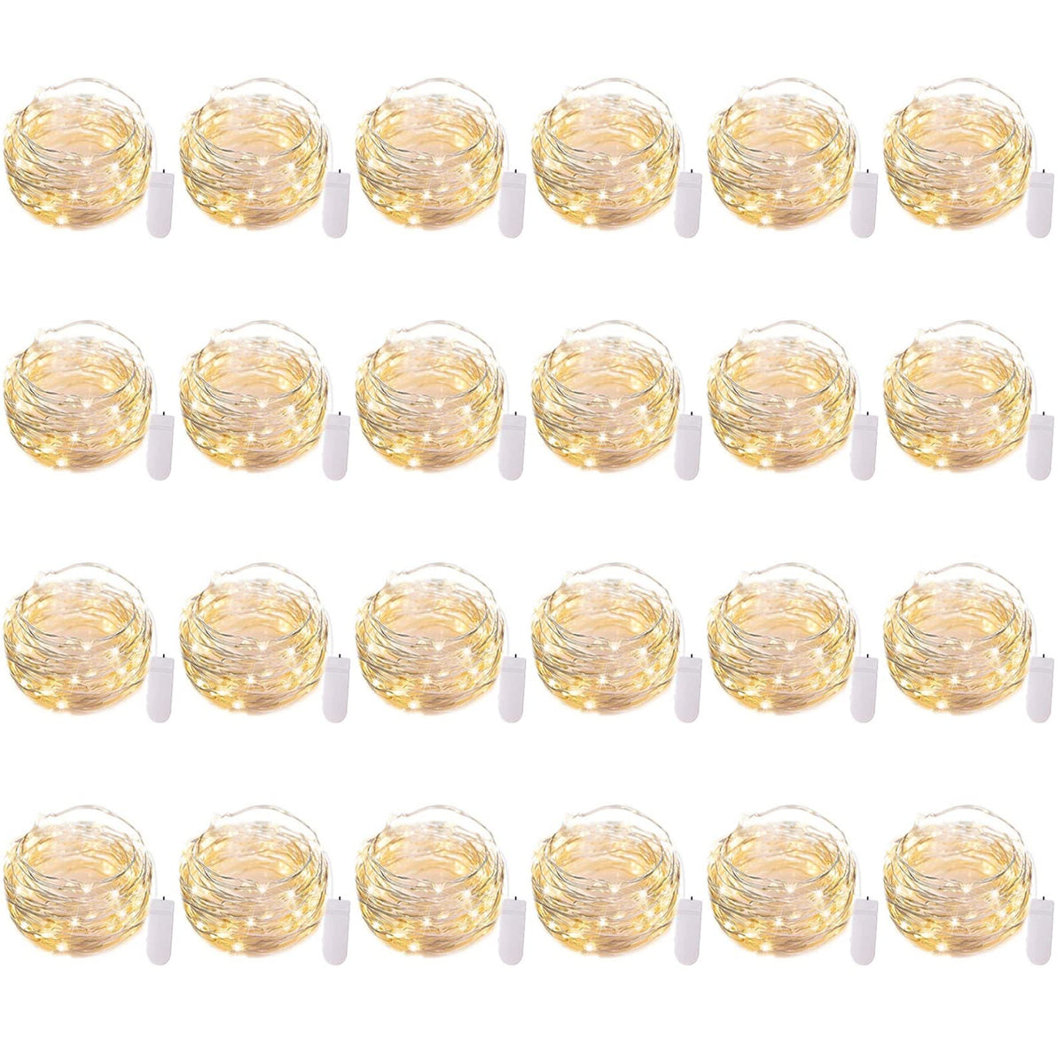 Brightown 24 Pack Fairy Lights Battery Operated - 7Ft 20 Led Mini String Lights Silver Wire Waterproof Firefly Starry Diy Lights For Bedroom Patio Wedding Party Christmas Decor (Warm White)