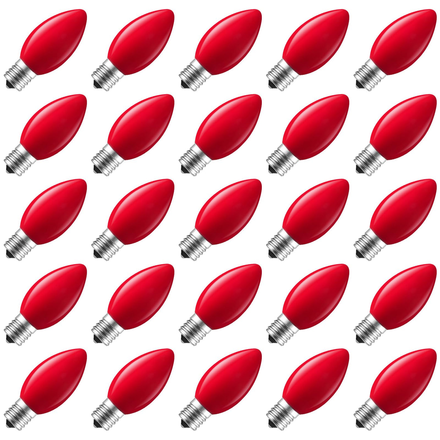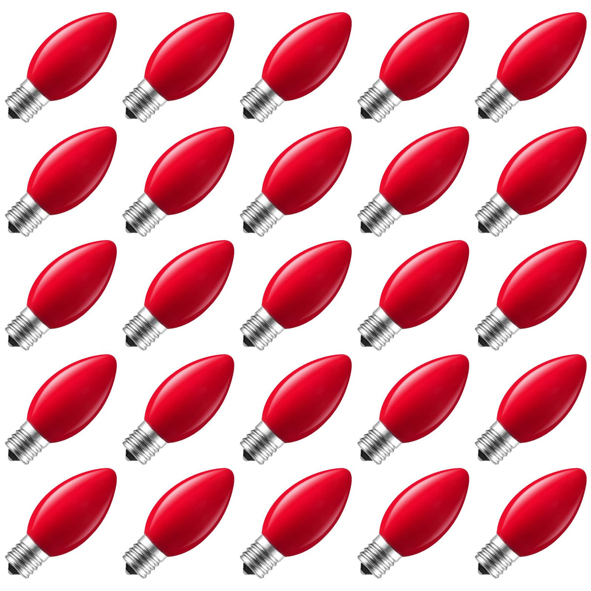 Brightown 25 Pack C9 Red Lights, C9 Replacement Light Bulb For Christmas Lighting, E17 Intermediate Base, 7 Watt
