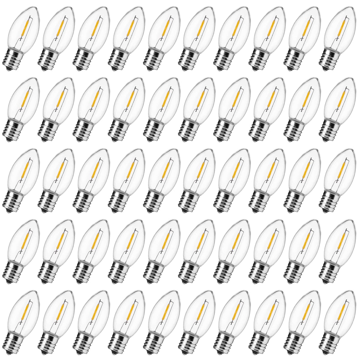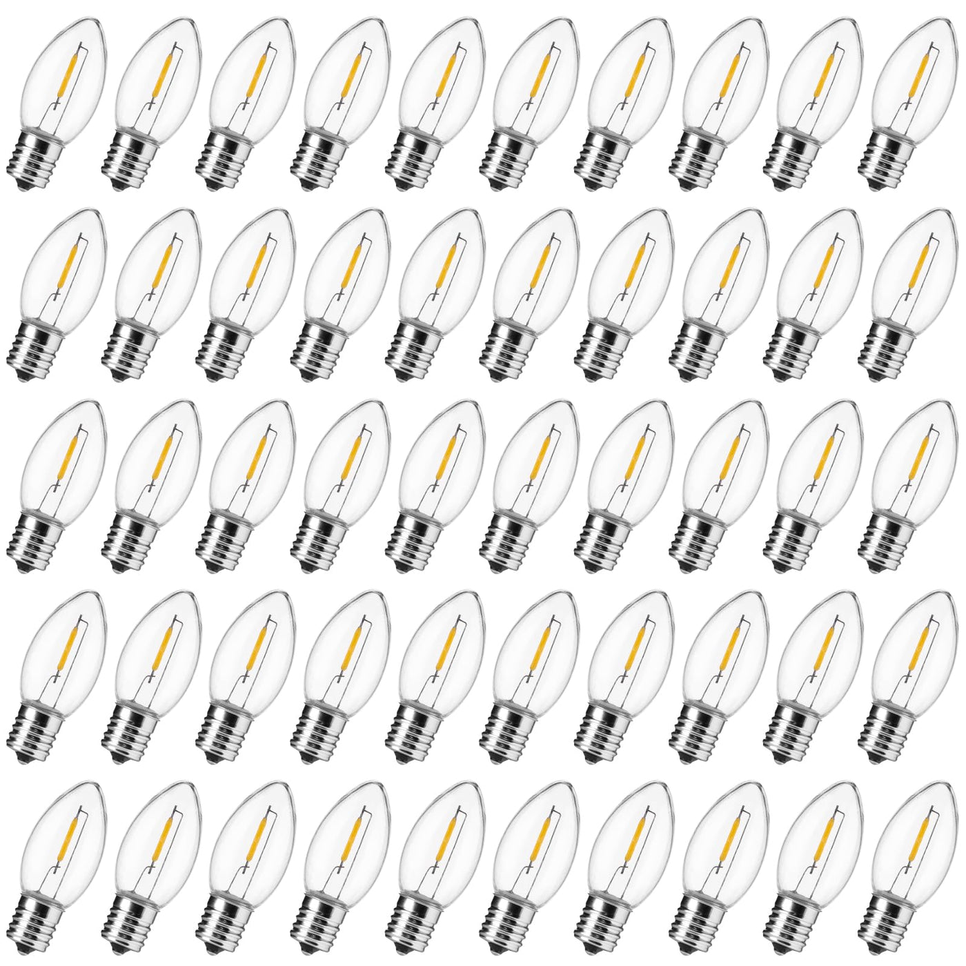 Brightown 50 Pack C7 Led Christmas Light Bulbs, Plastic C7 Replacement Bulbs, E12 Candelabra Base Commercial Dimmable Holiday Bu