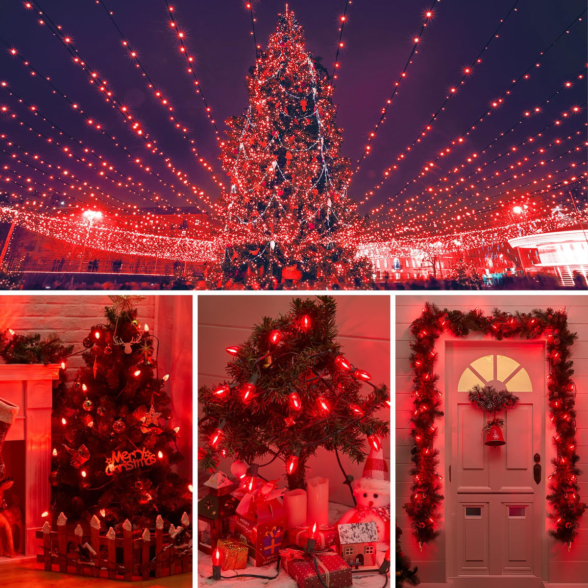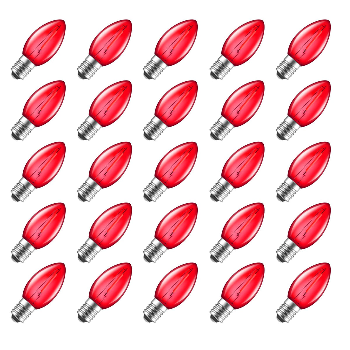 Brightown 50 Pack C7 Red Led Christmas Lights Bulb Replacement Light Bulbs For Christmas String Lights E12 Candelabra Base Commercial Grade Holiday Bulbs For Outdoor Indoor Decor Lighting