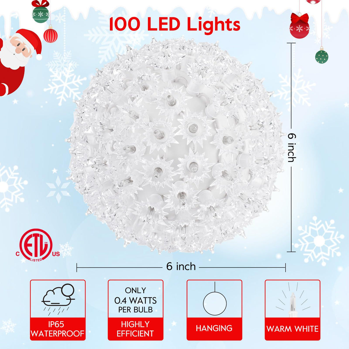 Brightown 6 Christmas Lights Ball Outdoor Sphere Lights 100 Replaceable Bulbs Plug in for Xmas Indoor Party Wedding Home Comm