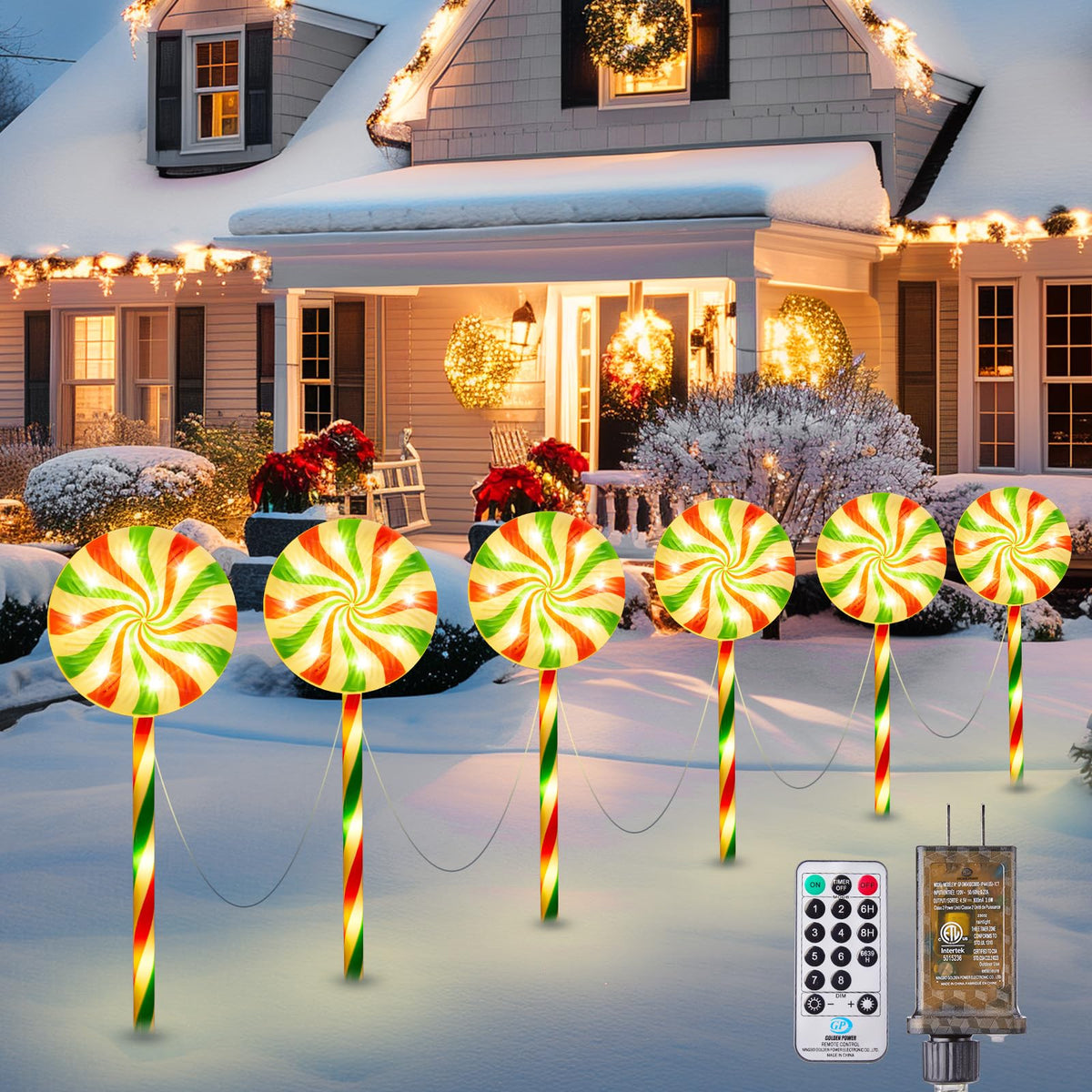 Q: Are these Christmas pathway lights waterproof and safe for outdoor use?A: Yes, the Brightown Lollipop Christmas Pathway Lights are made from PVC and are designed to be waterproof, ensuring durability in various weather conditions. They are safe for outdoor use, allowing you to enjoy festive decorations without worrying about the elements.