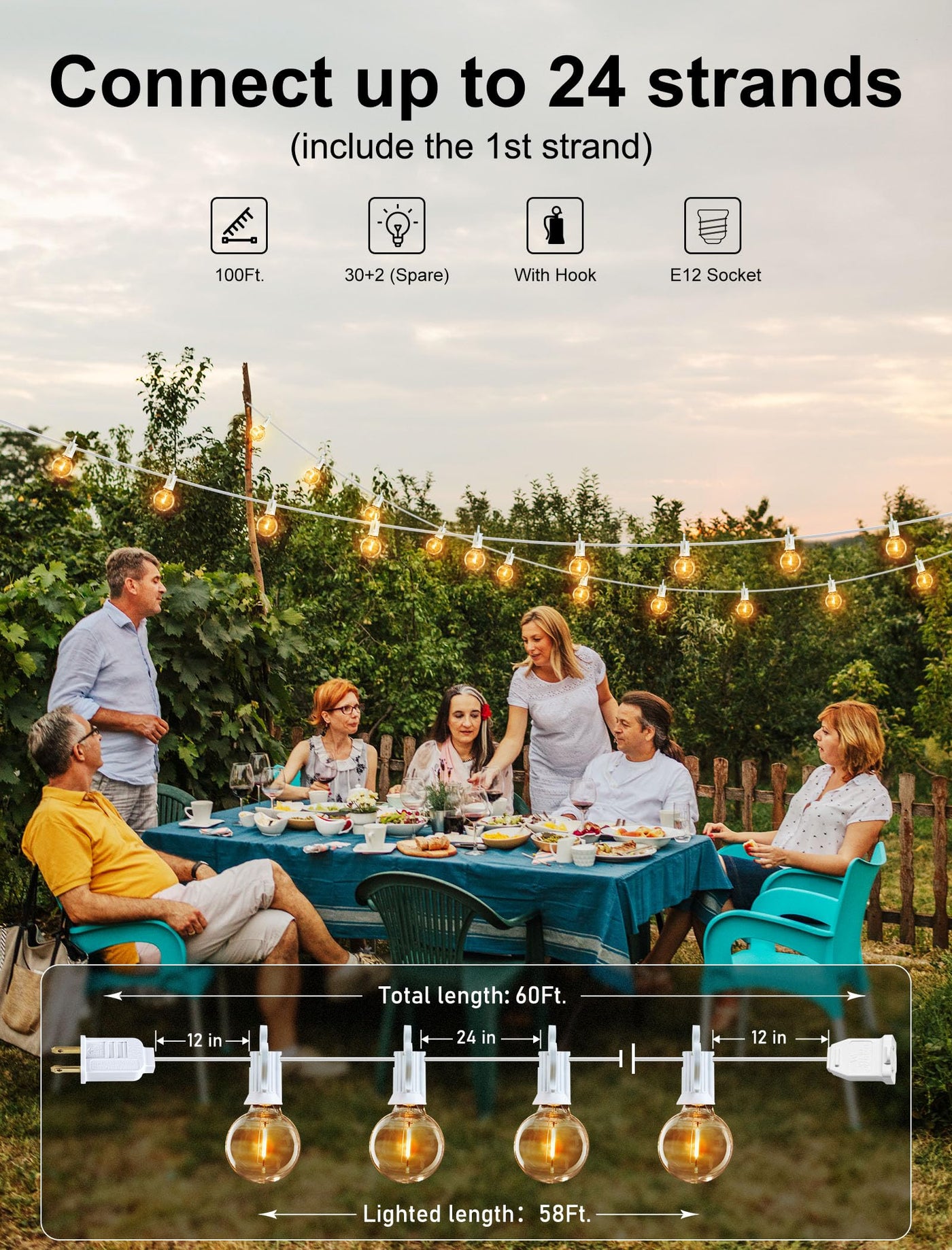 Brightown 60 Feet Led Outdoor String Lights With Shatterproof G40 Edison Bulbs, Connectable And Weatherproof Strand, Commercial