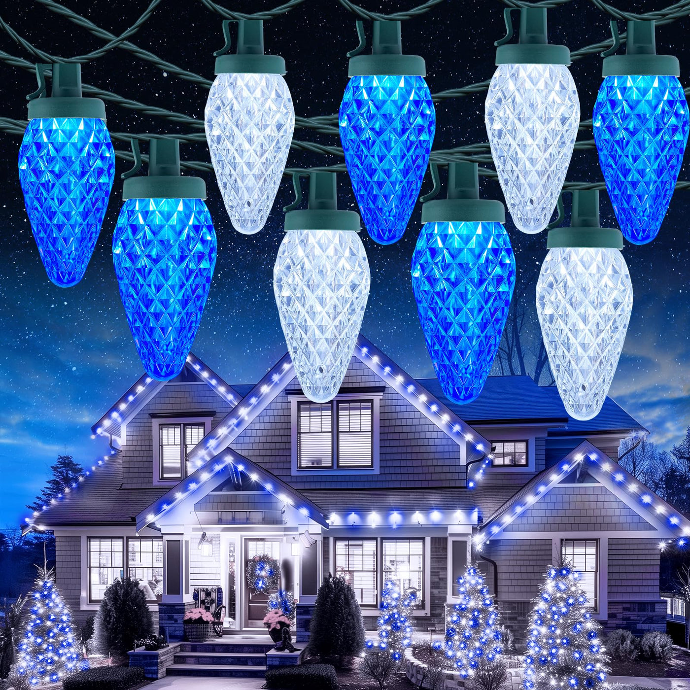 Brightown C9 Christmas Lights, 150 LED, 114 Ft, Waterproof, Timer, 8 Modes, Blue & Pure White, Model GY-C9-X-33-3B